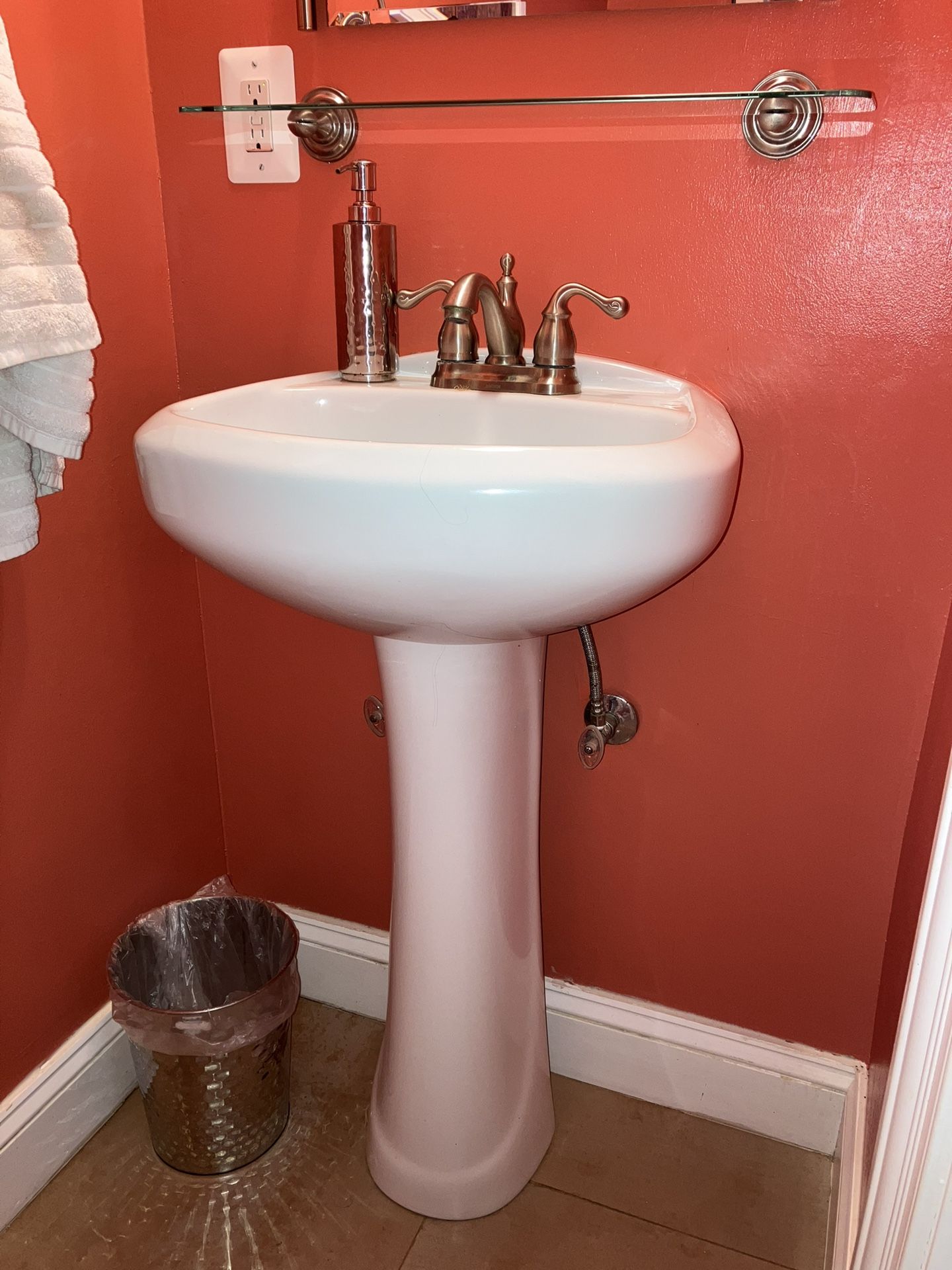 Pedestal Sink With Brushed Metal Faucet For Powder Room- 20x17x35.5”