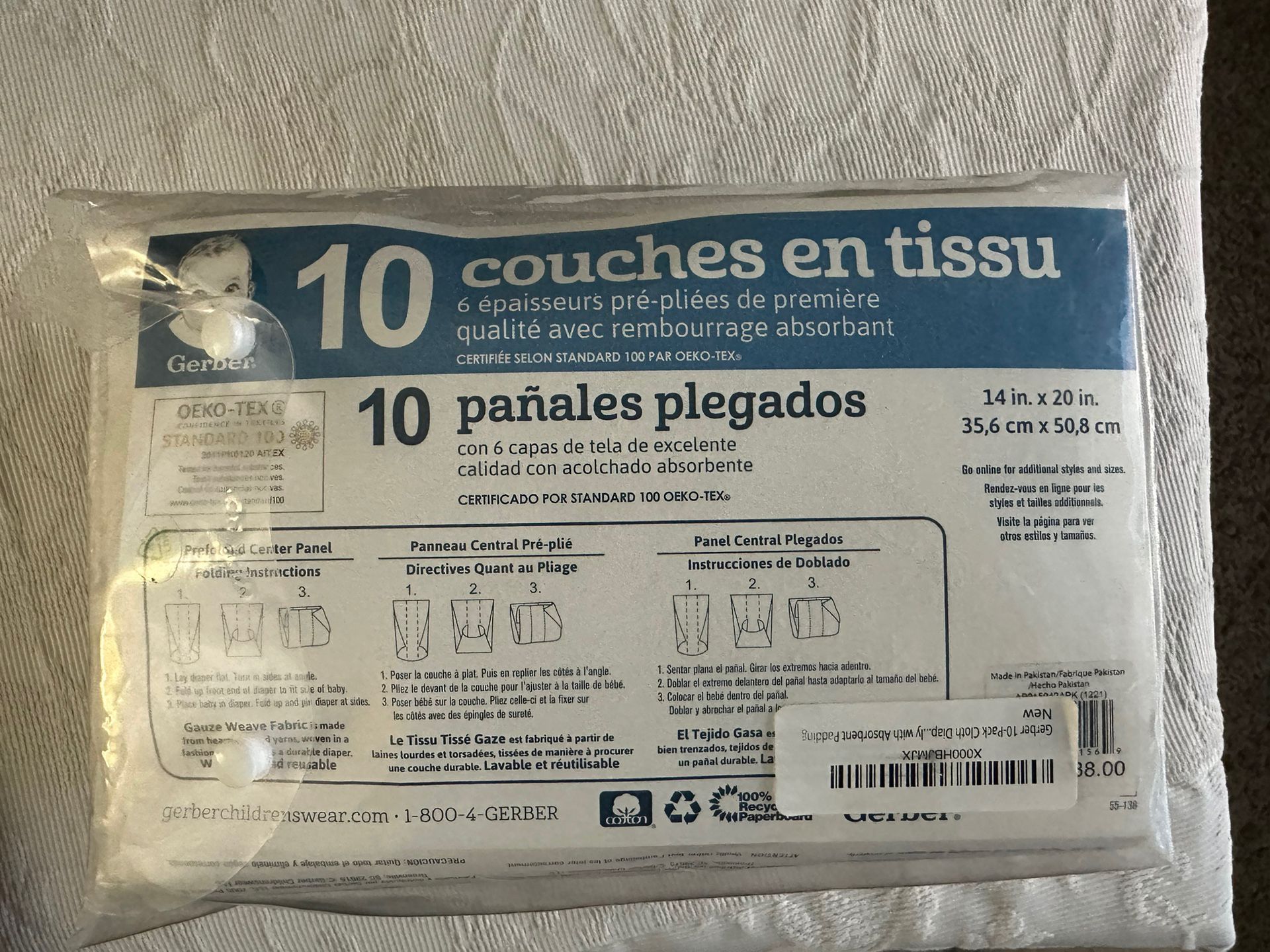 Gerber 10 Pack White Cloth Diapers , Cotton Diapers, Baby, Infant