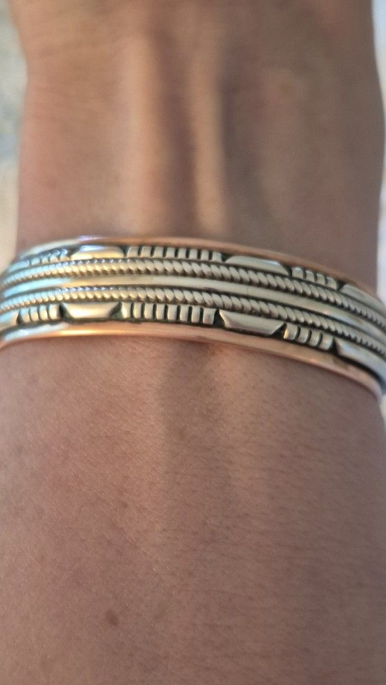 Vtg.Native Silversmith WALDECK JOHNSON STERLING SILVER & COPPER CUFF BRACELET