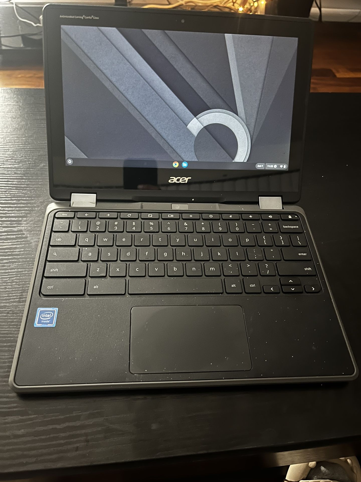 perfectly working Acer R751T series Chromebook comes with charger only has a small crack on the outer body near the chrome logo