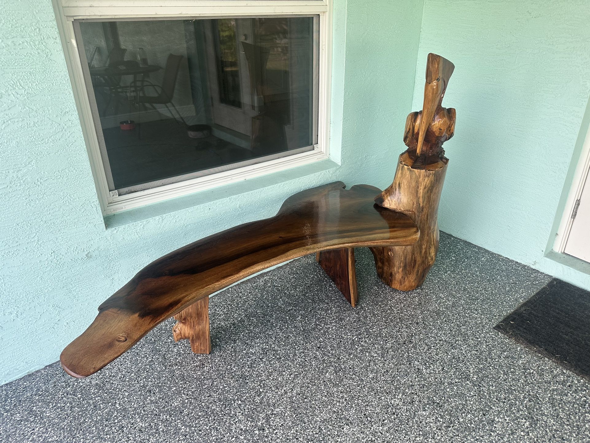 Carved Live Edge Pelican Bench