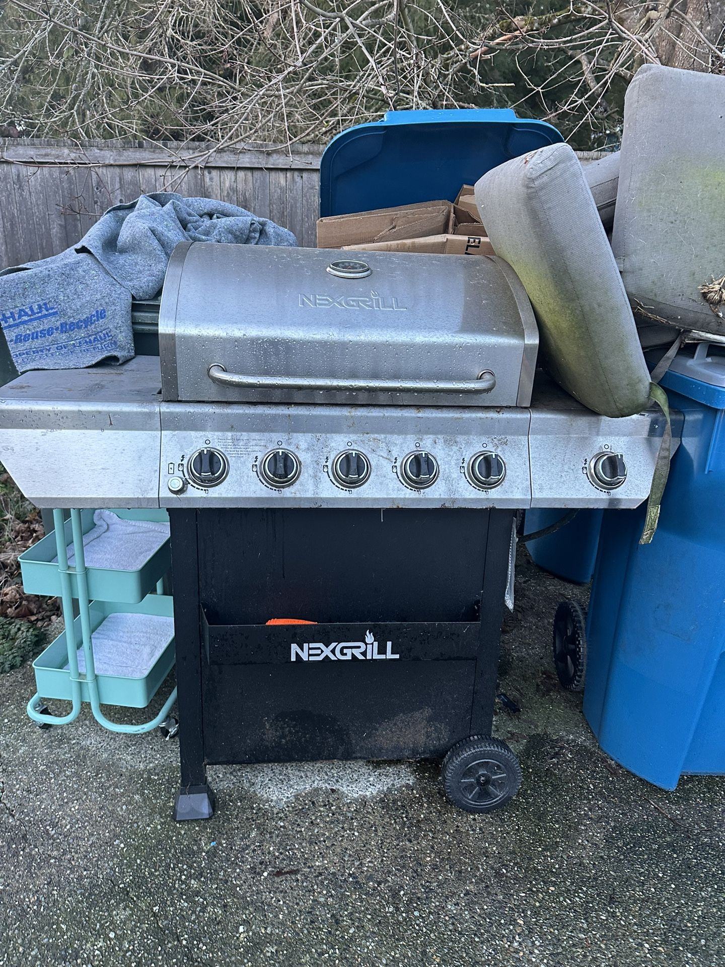 Come get this grill for free it totally works and comes with a propane tank u can easily refill address is 15324 50th PL W Edmonds WA 98026 it will be here outside until Friday if you want it come get it