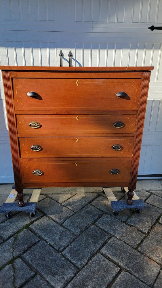 46 tall x 42 wide x 18 deep Beautiful bone inlay around keyholes. Mid 19th century/mid 1800s Sturdy, mahogany, all drawers slide well. Hand sawn dovetail finishes on drawers.