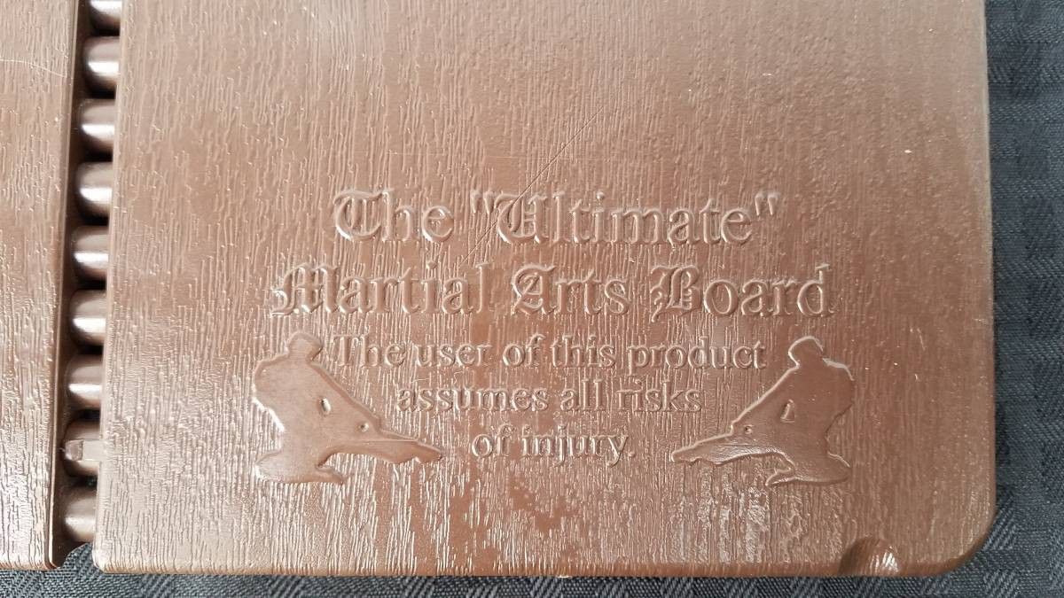 For Sale is The Ultimate Martial Arts Board. Very light wear, in great condition. This board allows you to practice your awesome karate moves, while saving thousands of defenceless trees. Manufacturer details follow below. UMAB, the Ultimate Martial Arts Board, is the manufacturer of the best rebreakable martial arts board on the planet. Similar to the size and feel of a real wooden board. It is constructed of super tough nylon to provide unbeatable strength and durability. Each board consists of two identical halves that snap together easily with our unique, patented hinge.