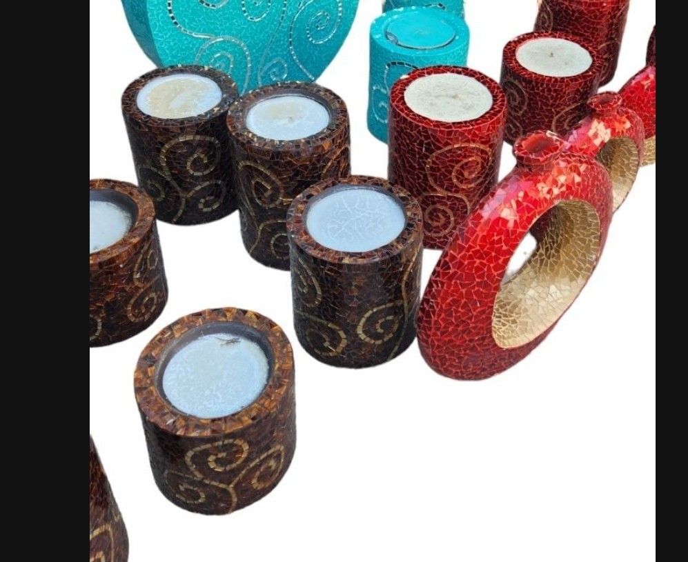 Mosaic glass matching Big candles $10 each Mosaic glass Big floor vase $10 Mosaic glass Small vase$10