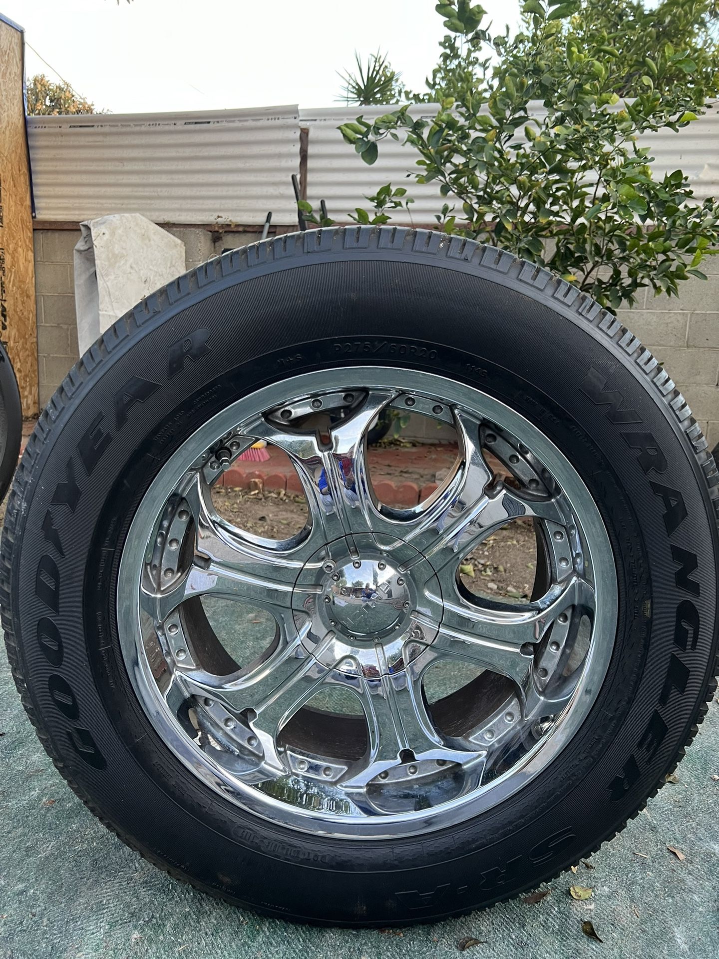 Selling (4) 20” Akuza Chrome rims with fairly new Goodyear P275/60R20 tires. The tires are in great shape. They came off a 2005 Ford F-150. Not sure what other models it fits