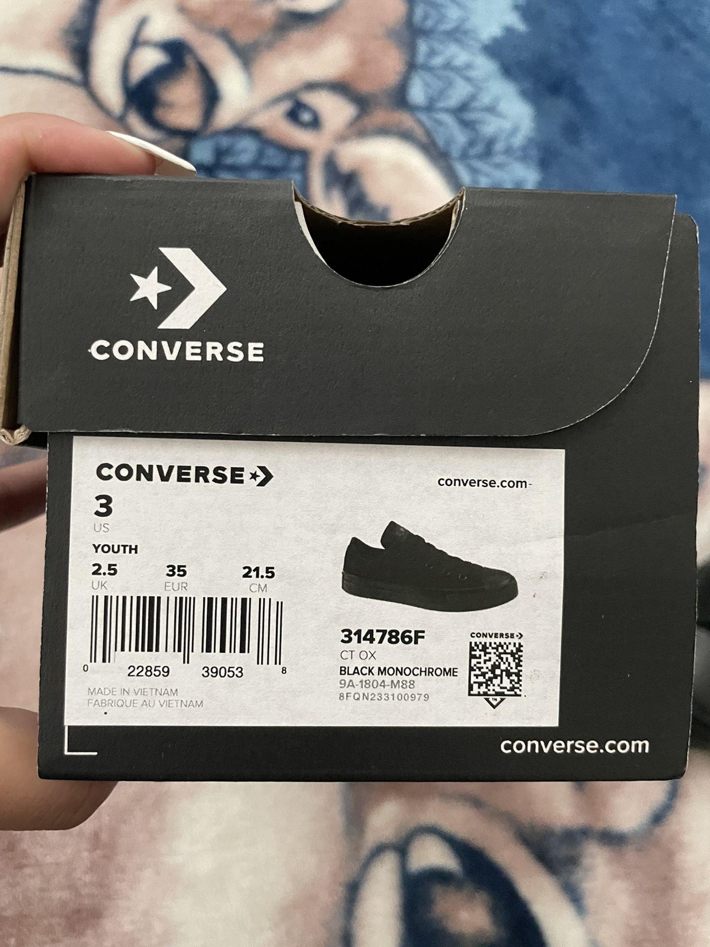 IN ORIGINAL BOX, NEVER WORN all black converse: 3 youth $30 (AVAILABLE) all red converse: 3 youth $30 (SOLD)