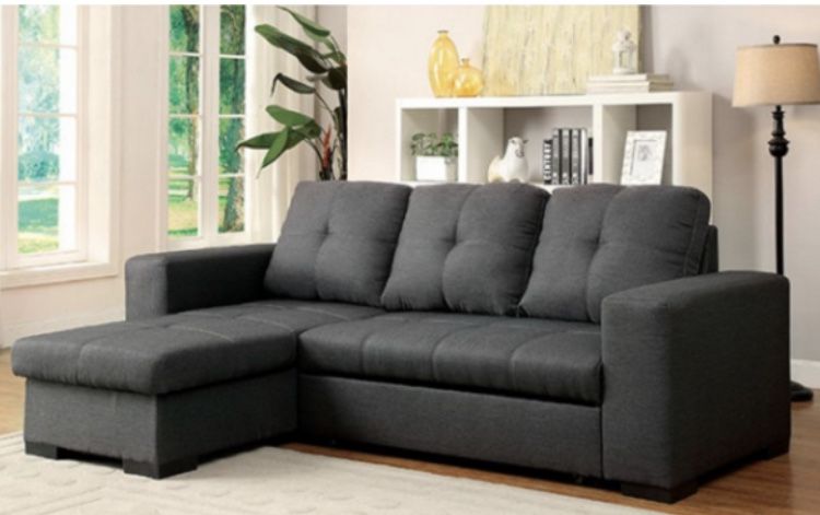 Sectional Sofa Item # CM6149GY Contemporary Style Reversible Chaise Converts into Bed Gray Fabric Dimensions: 98 3/4″L X 63 3/4″W X 36 3/4″H