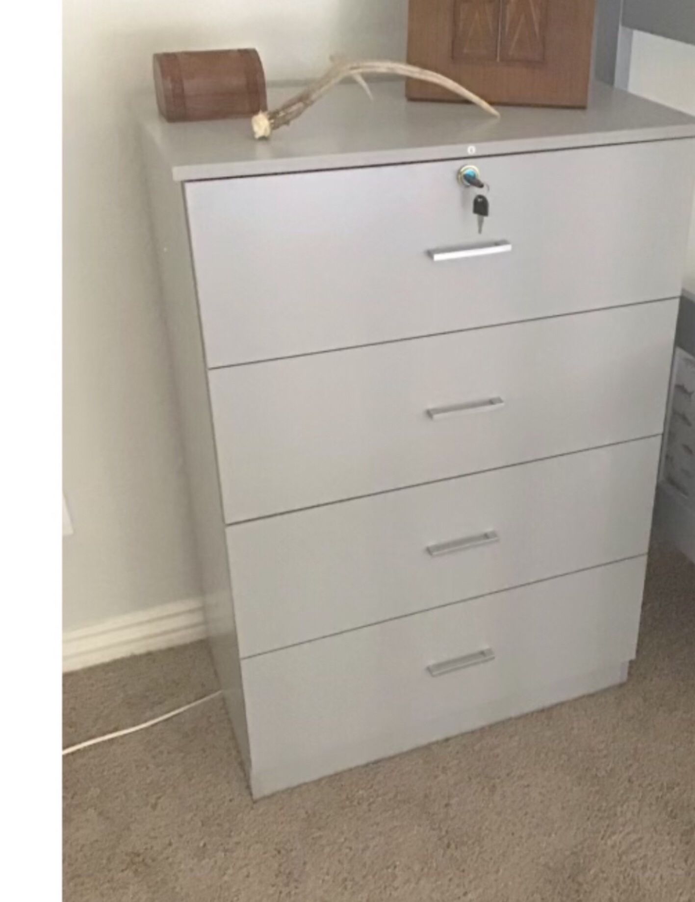 FREE DELIVERY AVAILABLE SAME DAY!!!,,,,,Assemble required 4 drawer dresser WITH LOCK Keep your belongings safe and Add a classic, simple, storage solution to your bedroom with the 4-Drawer Chest. It’s modern industrial design and clean lines will complement any decor. Profiled drawer fronts and nickeled handles help provide a timeless look. Keyed lock drawer helps keep your belongings safe from unwanted hands. Assembled dimensions: 28in. W x 41 in. H x 16 in. D Drawer dimensions: 27 in. W x 9 in. H x 14 in. D Smooth running drawer glides Safety stops to help keep the drawers secure and in place Constructed from CARB compliant, laminated composite woods Assembly required