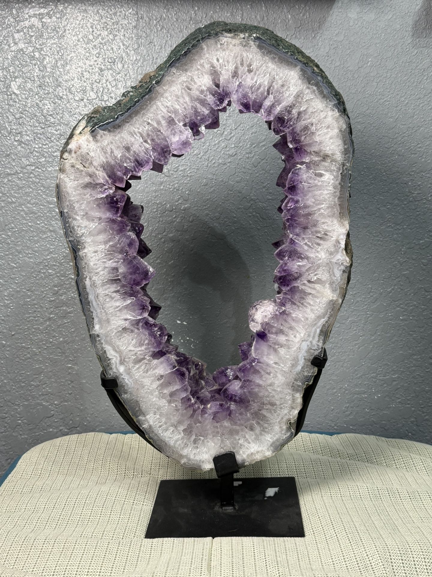 Amethyst Crystal portal on stand. 12”W x 18”H