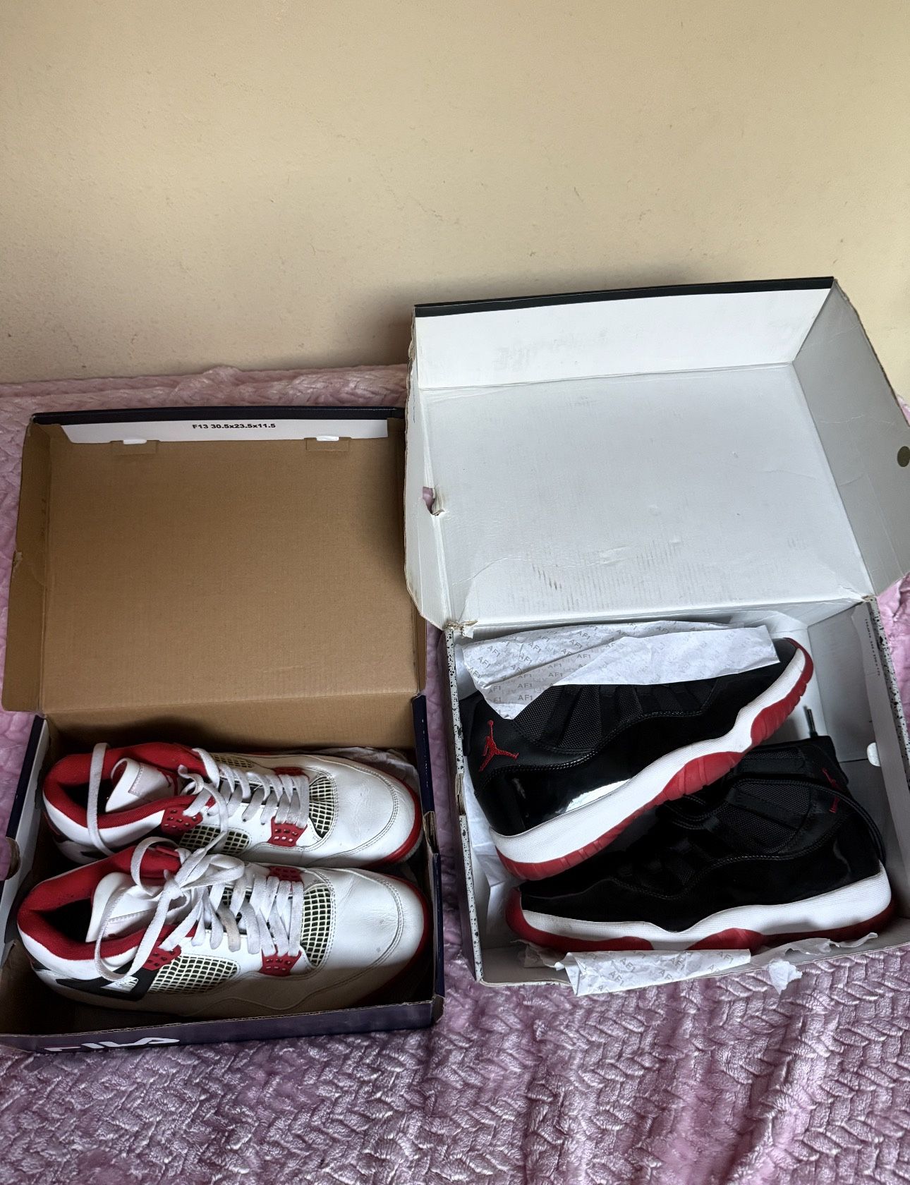 Jordan 11 bred size 10.5 in replacement box. used but not that used. Same for the Jordan fire red 4s. Hearing all offers. First come first serve. Trying to get rid of them together. Pick up in Rosemead