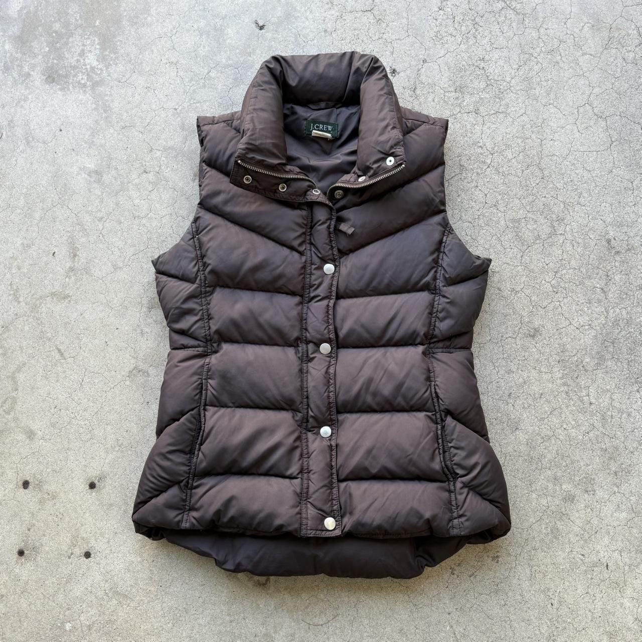 J Crew Down Puffer Vest Jacket Essential J Crew piece. Warm lightweight and comfortable. With Kemal signs of wear . There’s some marking on the front left chest area SEE PHOTO 8. Otherwise in excellent Preowned condition. No holes or rips Size Small Actual measurements Pit to pit: 17” Length: 25” Bin A Message for measurements or any other questions