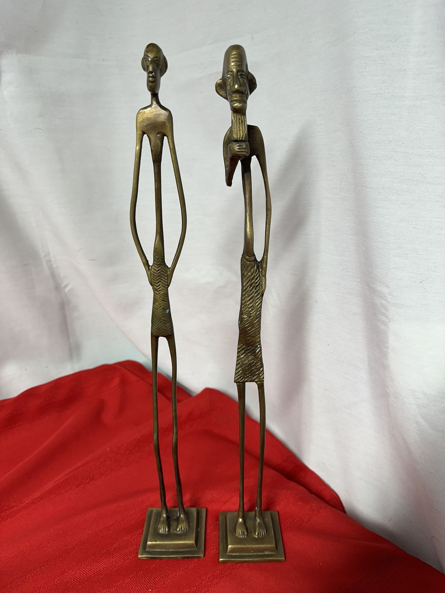 All in good condition Tall brass statues 17 inches tall -$65 pair Horse 5 inches-$15 Dog 6 inches- $45 Vintage Blackamoor Nubian Bronze 10 inches- $60 Venetian Blackamoor metal 11 inches $60 Uncle Sam 12 inches -$45
