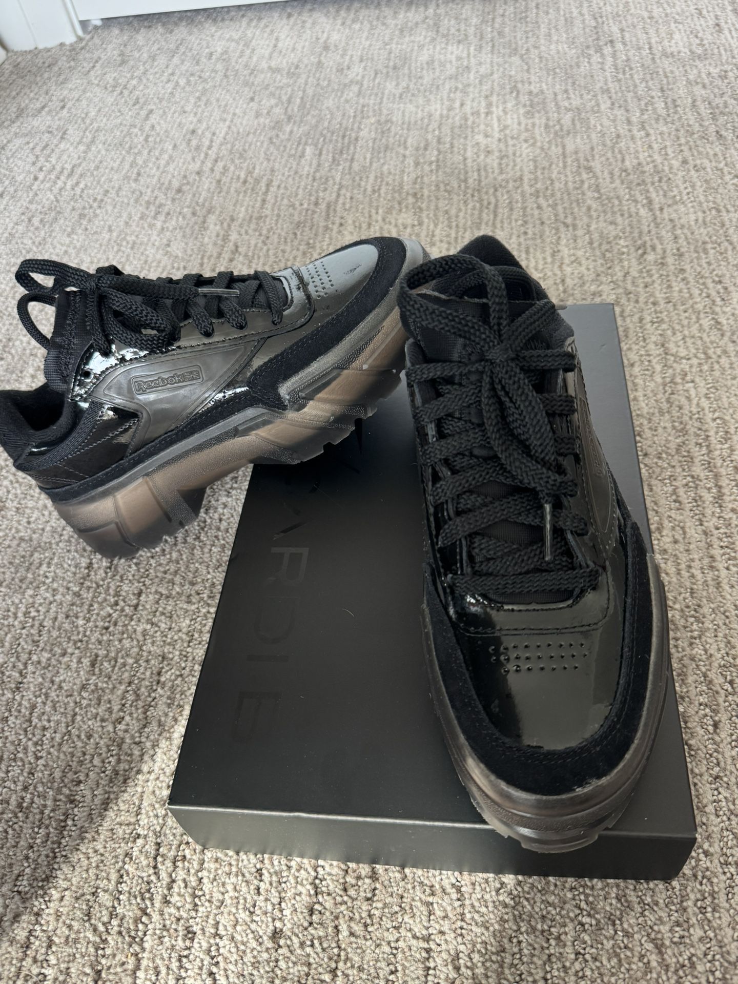 Selling a pair of women black Reebok shoes in great condition. (Size 4) No major scuffs, tears, or damage. Clean and ready to wear.