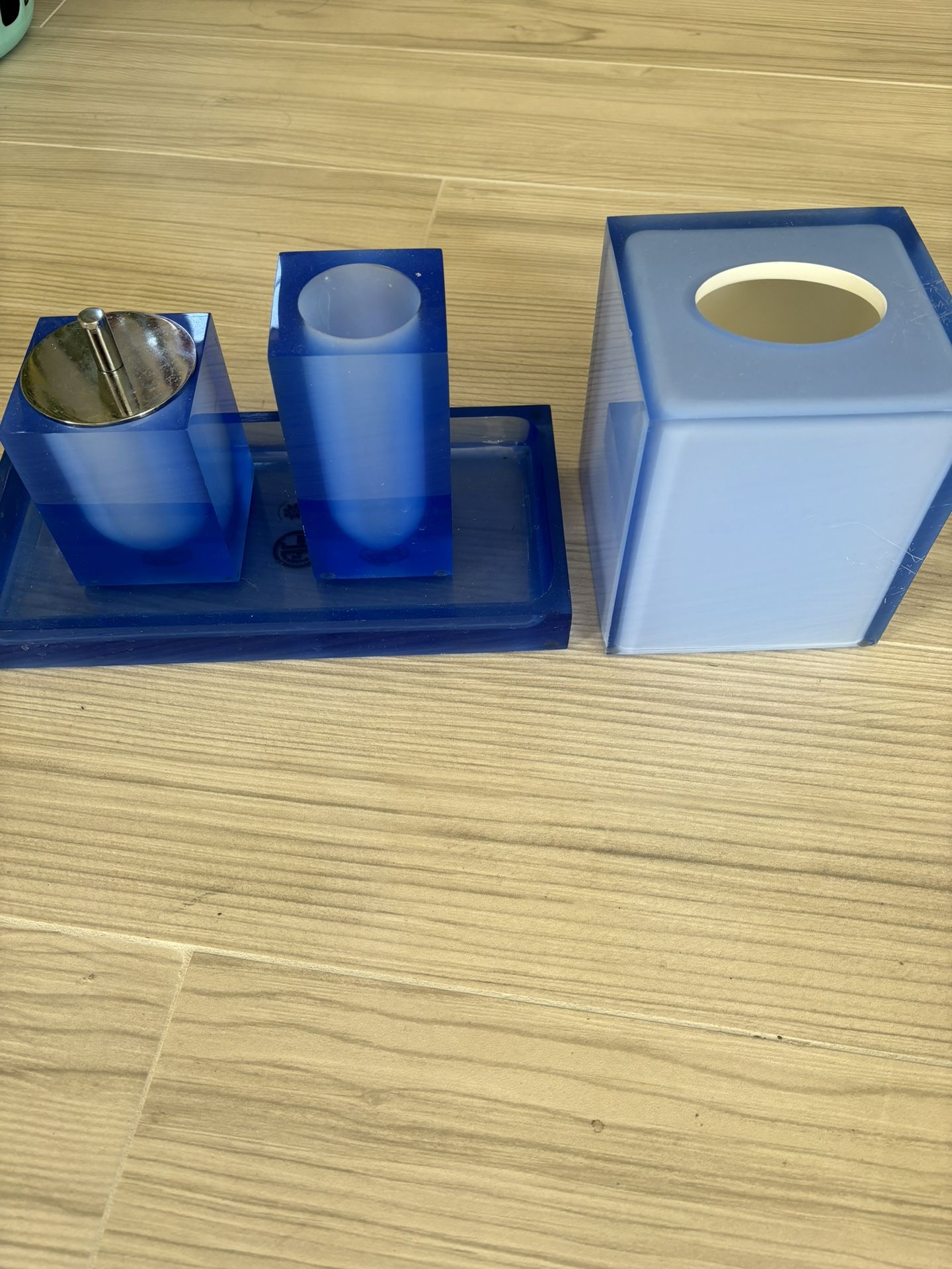 There are some scratches on the tissue box cover, and canister lid.