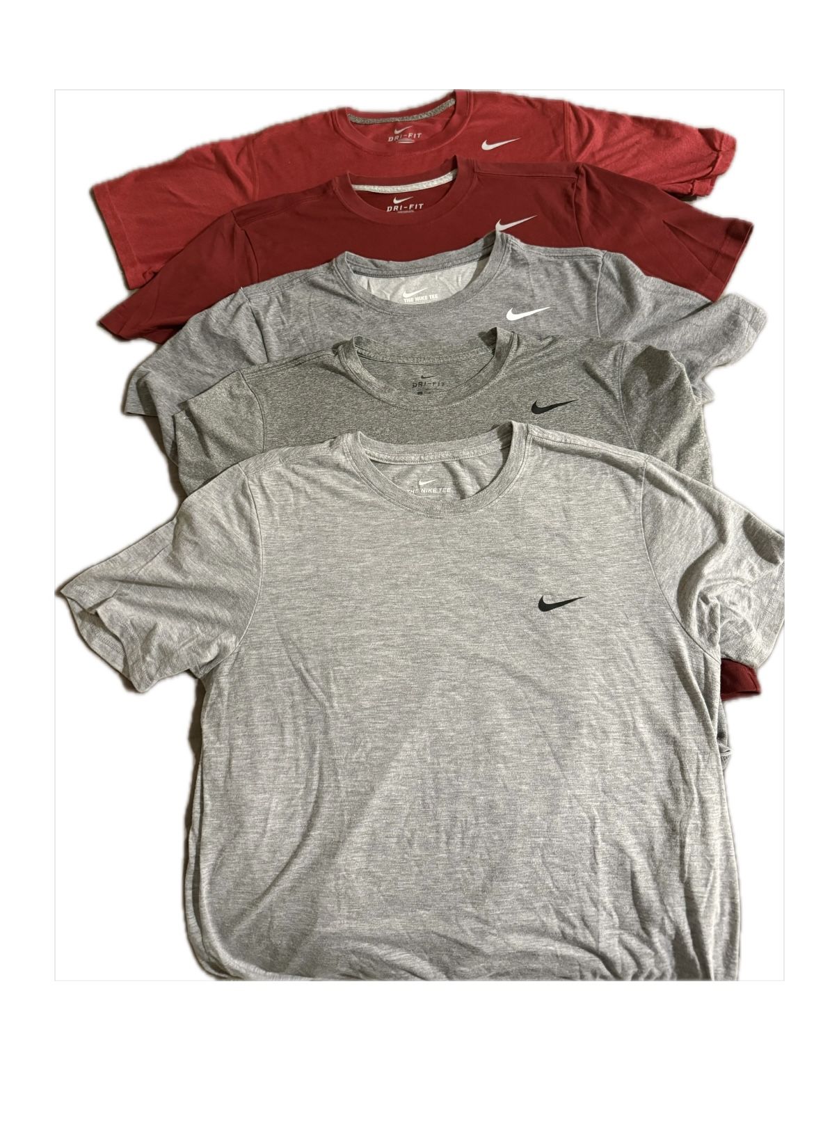 Men’s Nike dri-fit tees Size: all Medium Color red tees are new without tags ($13 each) Grey tees are lightly used ($9 each) $35 for all 5