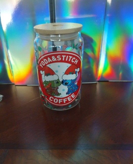 Stitch And Joda Christmas Custom Glass Cup 13 Oz