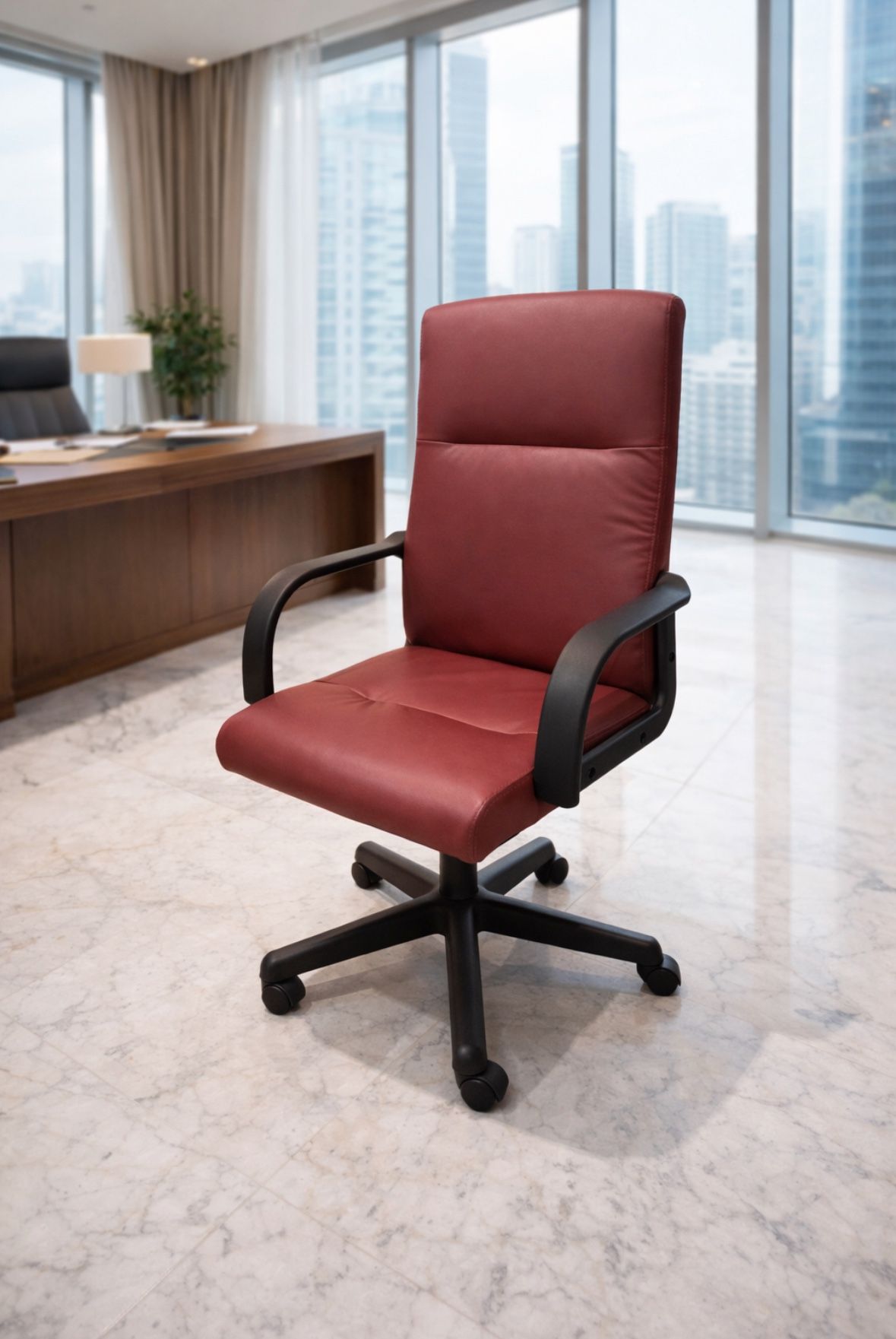 Shukii Waterproof Office Chair Cover PU Leather Computer Seat Covers Stretch Rotating Chair Slipcover with Elastic Bottom Universal Chair Protectors for Rotating Boss Chair (Wine Red, Large)