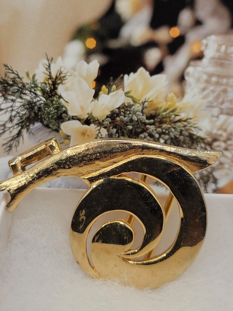 "MIMI DI N" 1979 SIGNED, BELT BUCKLE, GOLD TONE 2.5"INCHES LENGTH, MIMI DI N, BEST IN UNIQUE VINTAGE PIECES. THIS PIECE IN EXCELLENT CONDITION. #1259