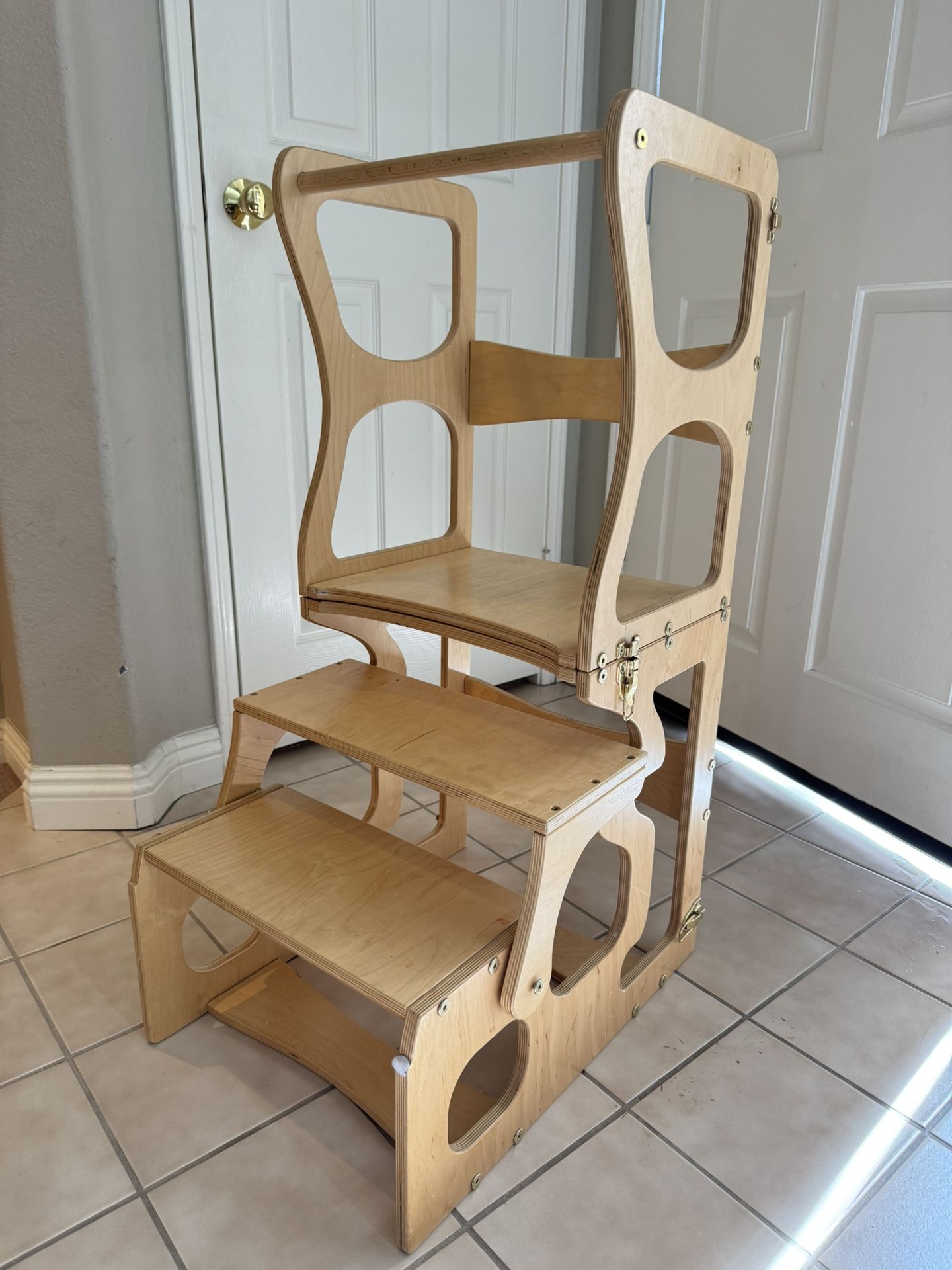 Step stool with back Montessori tower Children table Learning chair Activity tower Kitchen tower Learning stool Wooden step stool