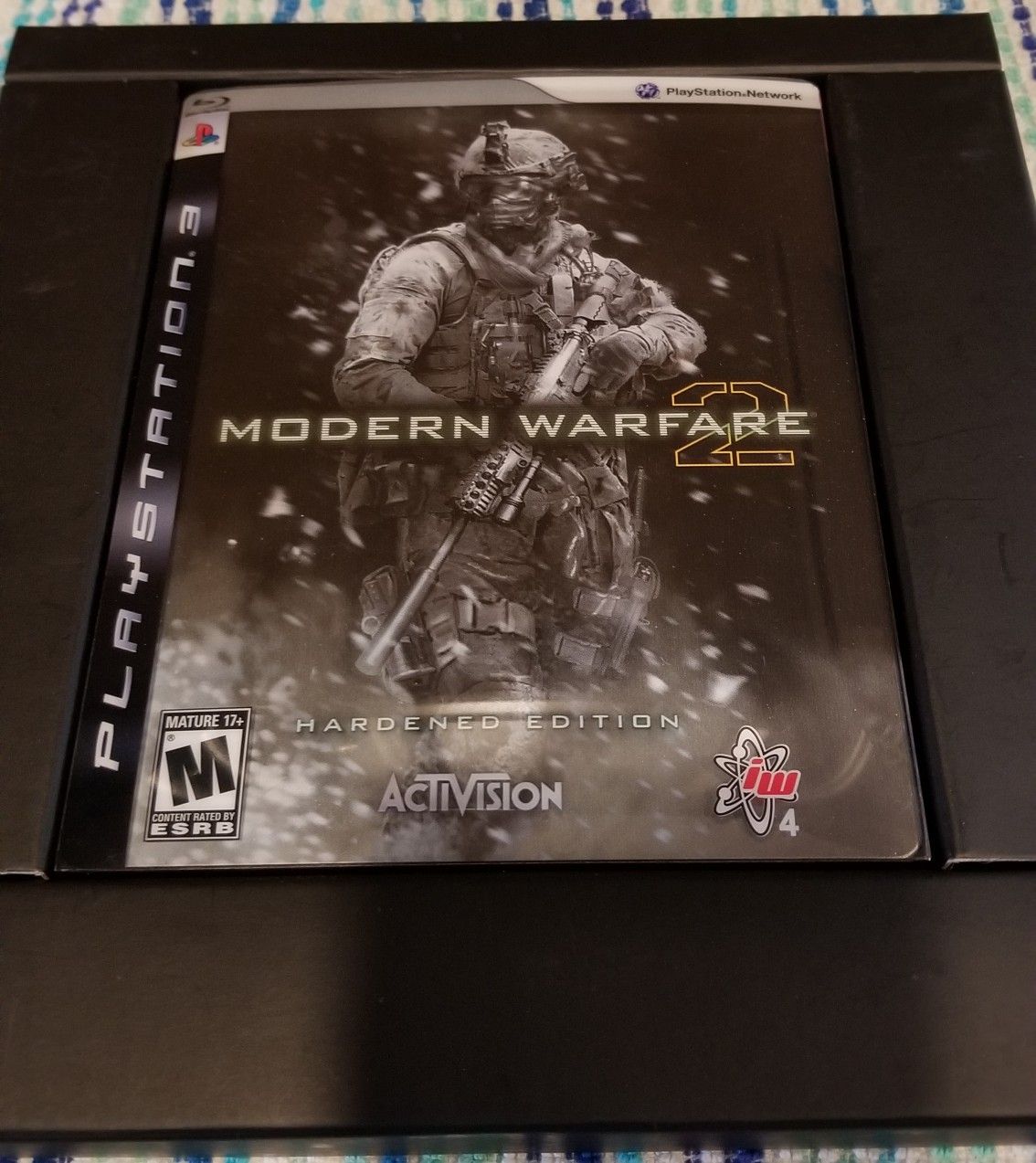 COD modern warfare 2 Hardened edition collectors set. Everything is there including free content code insert. Never handled except to take pictures. Disk has never been in a machine. 100% flawless. Black outer cardboard packaging has small scuffs. Located in Stoneybrook hills Mount Dora.