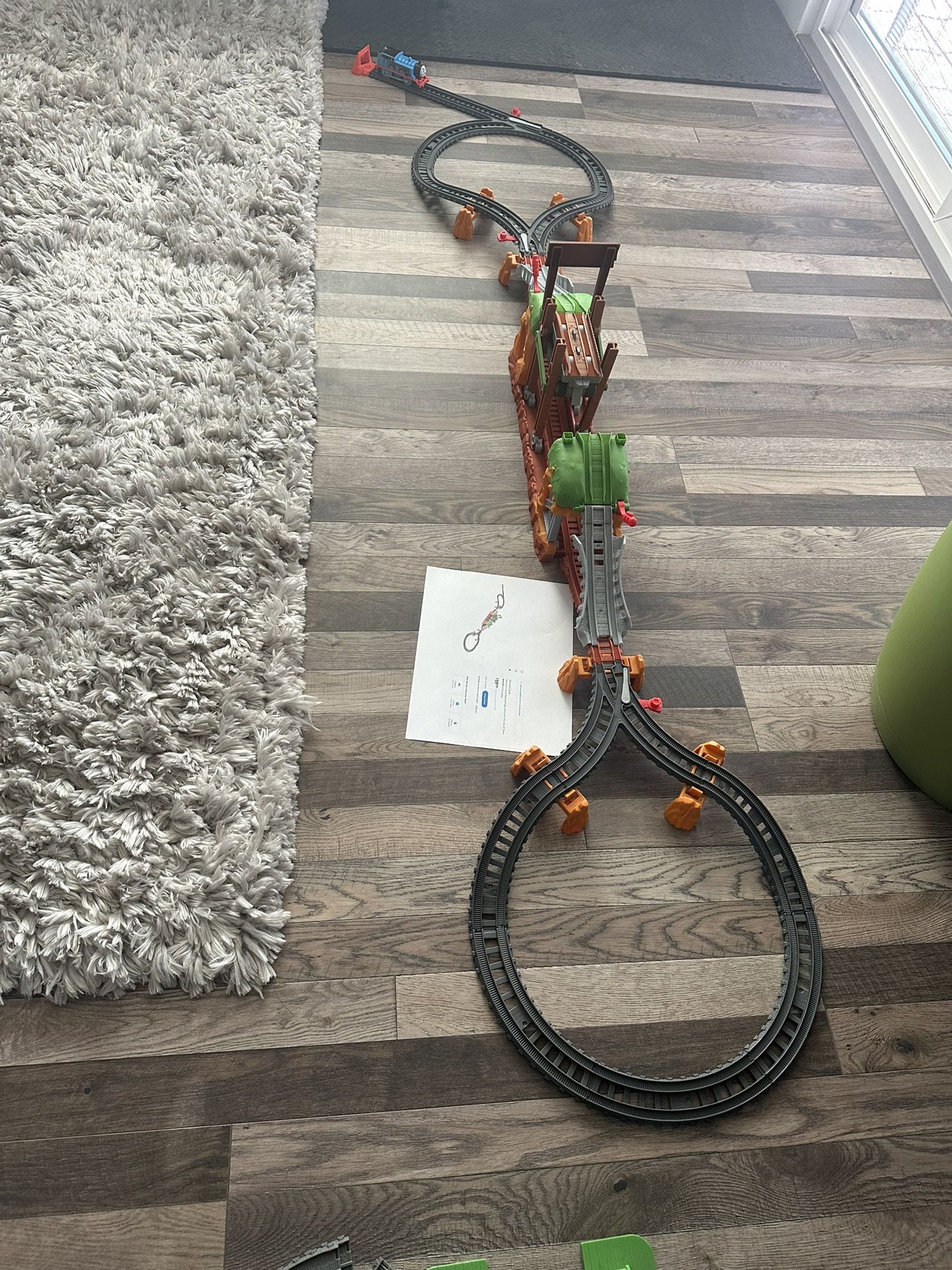 Thomas & Friends train set featuring a motorized Sodor Walking Bridge, just like the one in the show! When the motorized Thomas engine rolls onto the Walking Bridge, the bridge "walks" the train to the other side Kid conductors can open hidden trap doors and send their engines through secret tunnels under the bridge Includes more than 6 feet of track. Compatible with Thomas & Friends TrackMaster track sets to create limitless Sodor adventures! (Track sets sold separately and subject to availability.) For preschool children ages 3 years and older All parts accounted for! Pick up only cross streets are 20th St. and Union Hills, unless shipping. This collectible piece is no longer available, but can still be found at much higher prices.