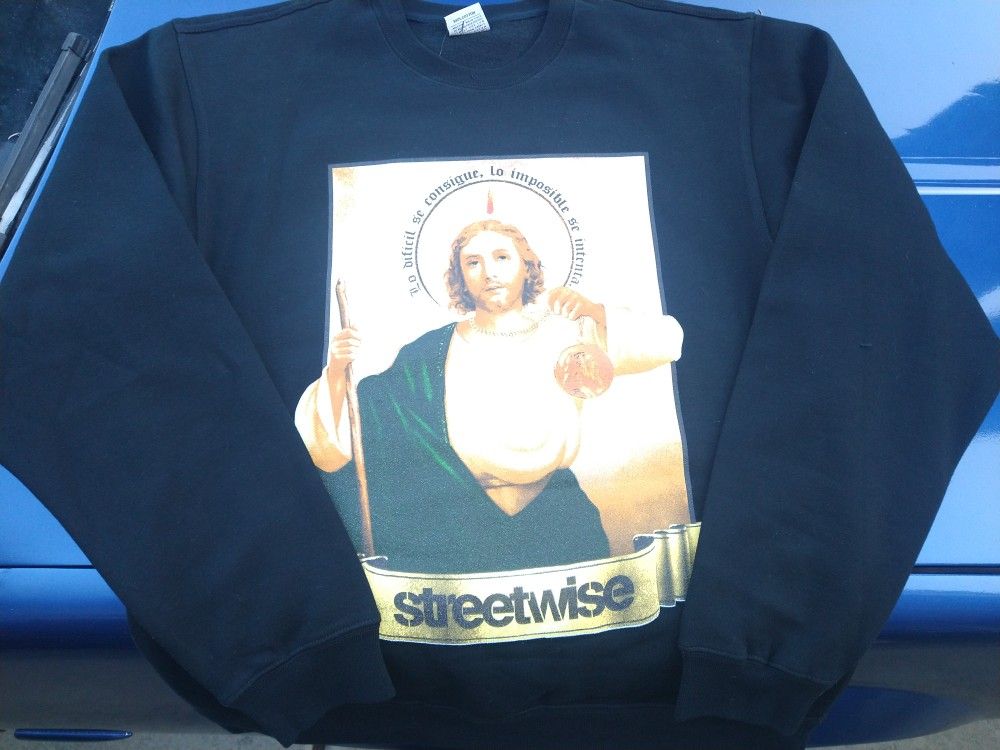 I got a streetwise crew neck San Judas sweater. Only in black I got M XL 2X 3X $55 if the ad is up it's till available