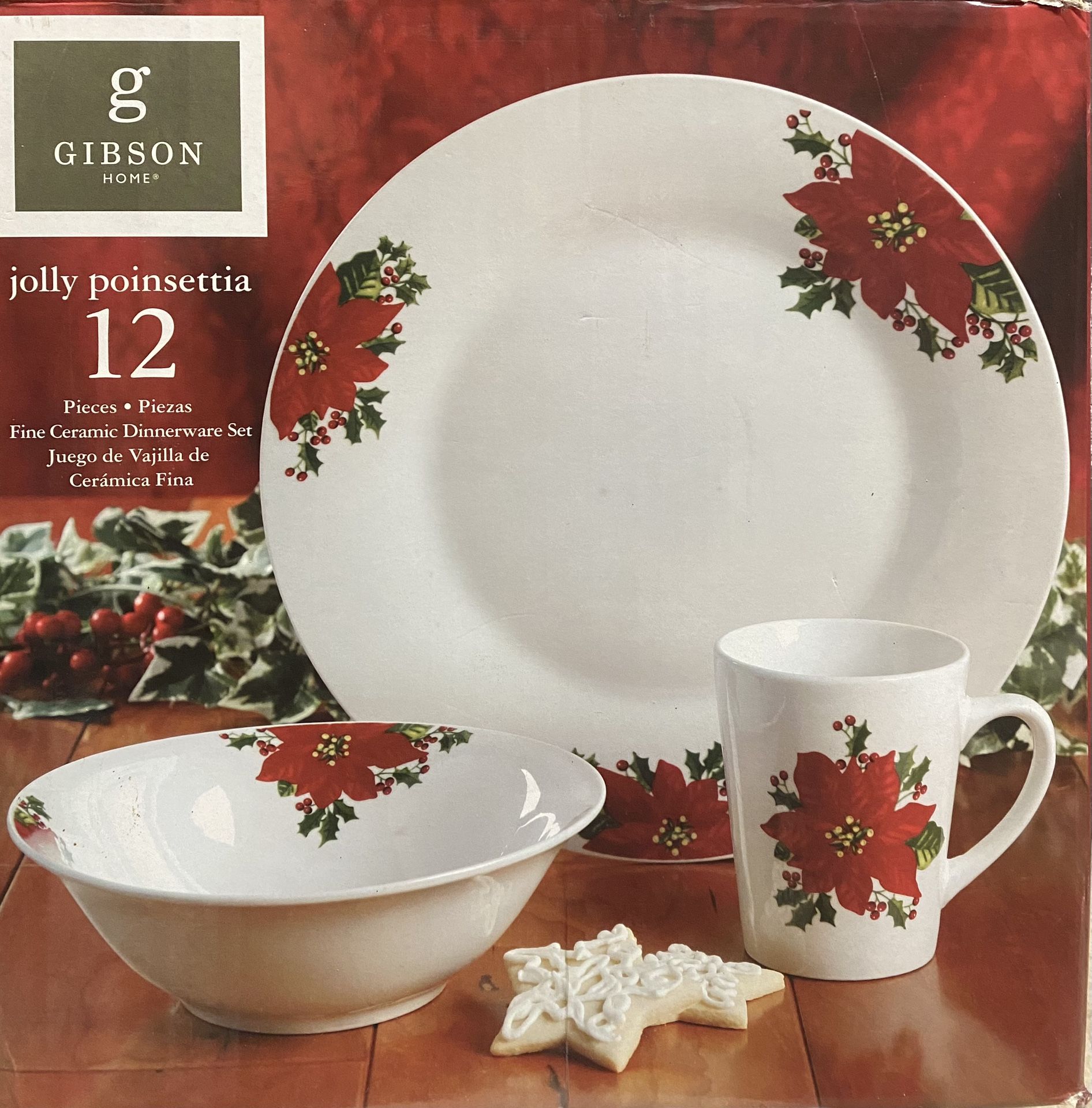 Holiday dinner set including 4 dinner plates, 4 bowls and 3 mugs, new in box.