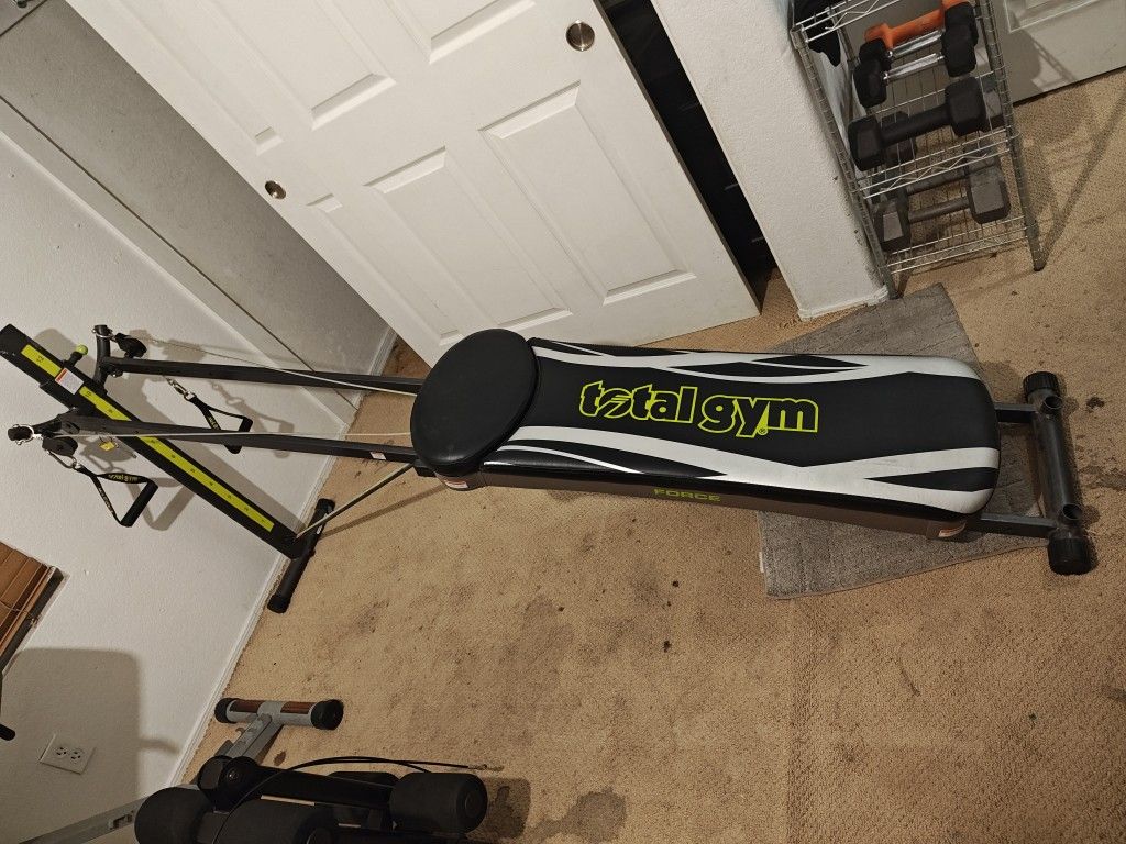 Hi have this total gym up and down work out with your body works great in good condition $60 fold quick for easy storage get whats on picture show in good condition sale as is