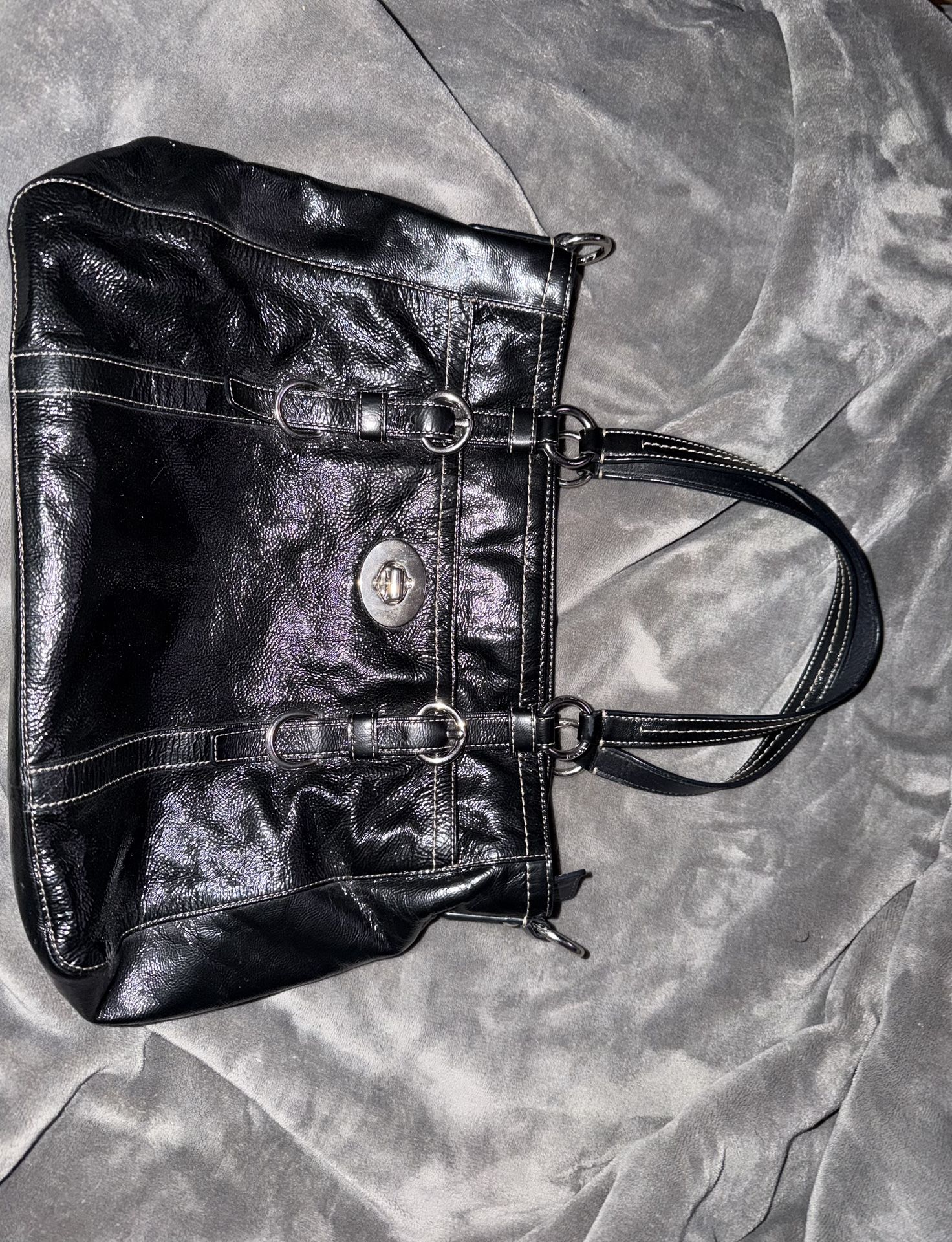 - Its a authentic black leather tote coach bag -The interior is purple in perfect condition -I only used it once,shoot offers!!