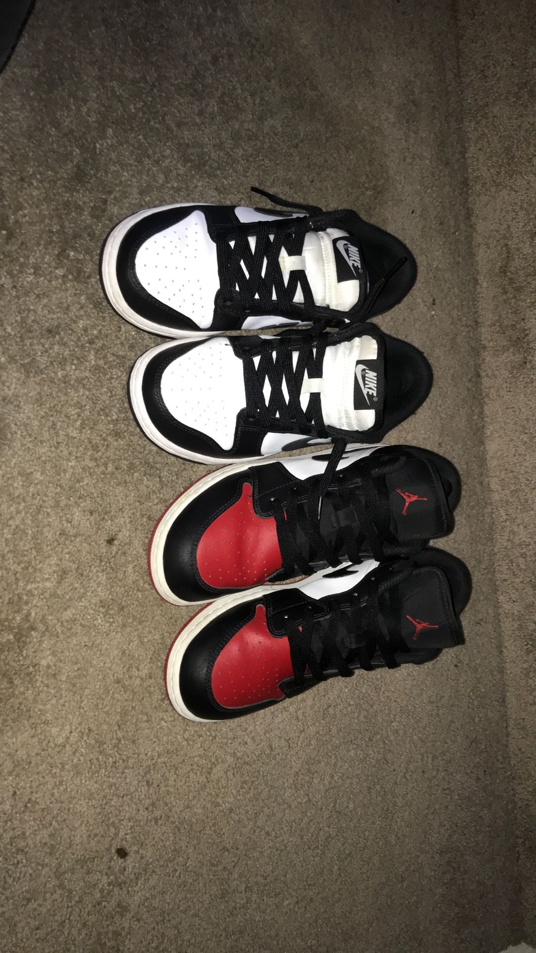 The white and black one or normal used and the red and black and white ones are open out of the box and use a couple times only. The white and black ones are 6.5 youth and the red and black ones are 7 youth and you can buy one pair or both together