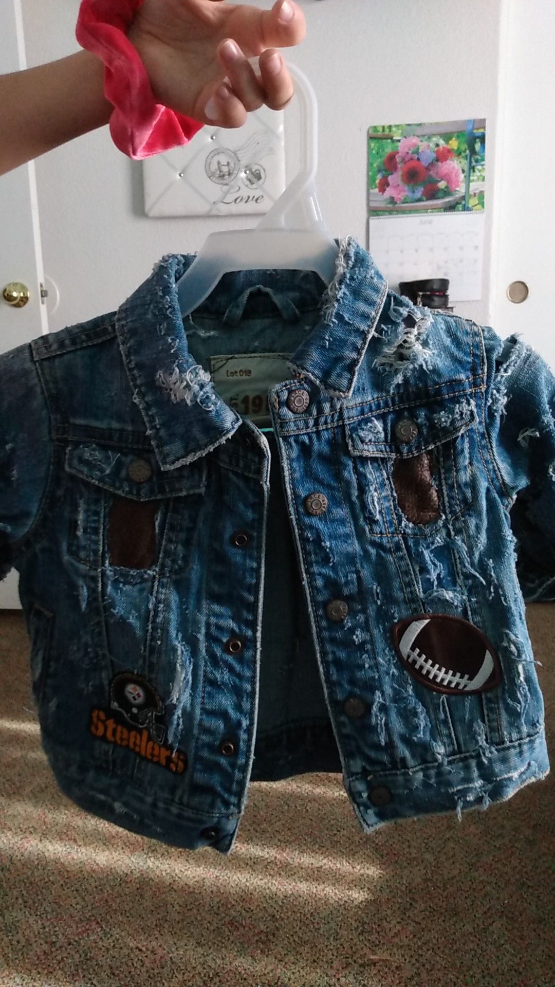 Jeans Steelers jacket " size 6 to 9 months 30$ OBO