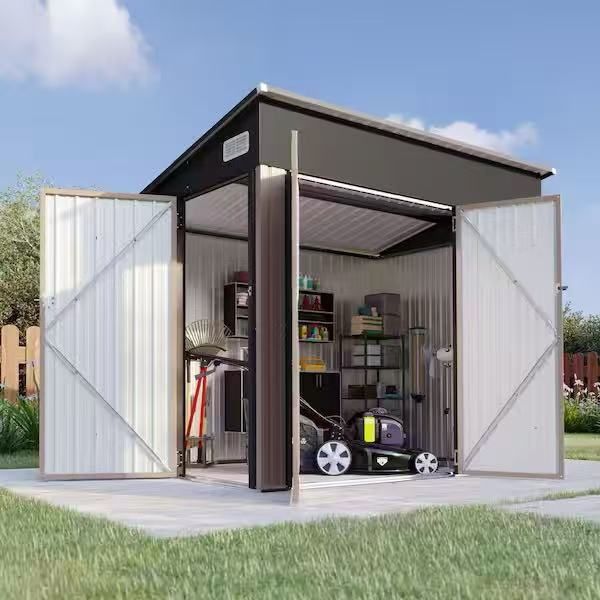 8x5 Outdoor Lean to Storage Metal Shed with 3 Lockable Doors, Air Vents for Patio, Brown $190