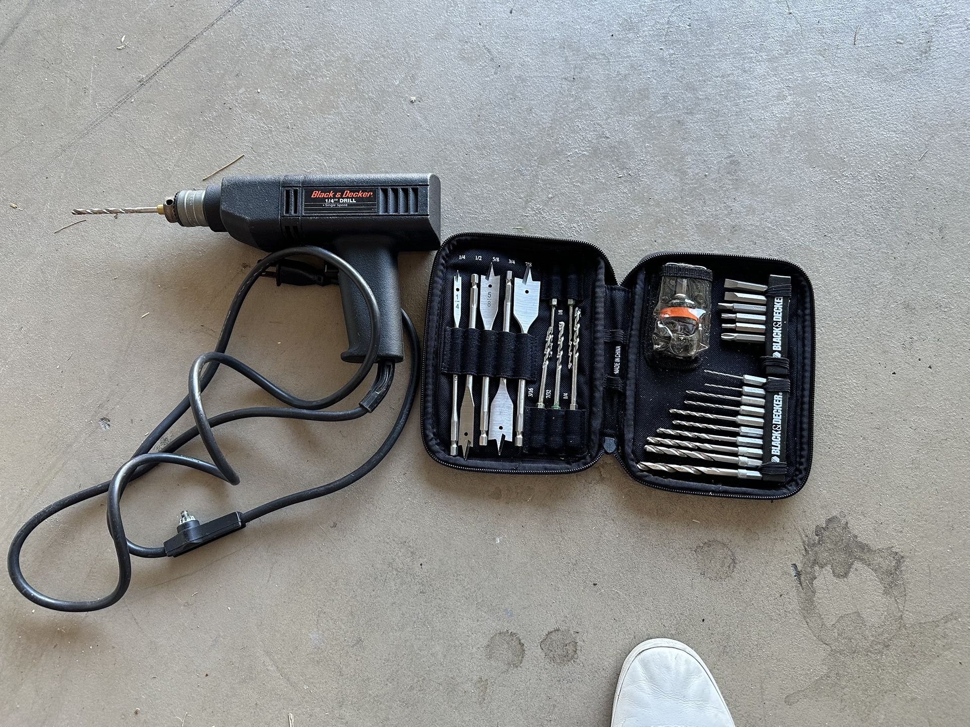 Black & Decker, quick connect 30 piece set with case, brand new, never been used, and free one speed electric drill