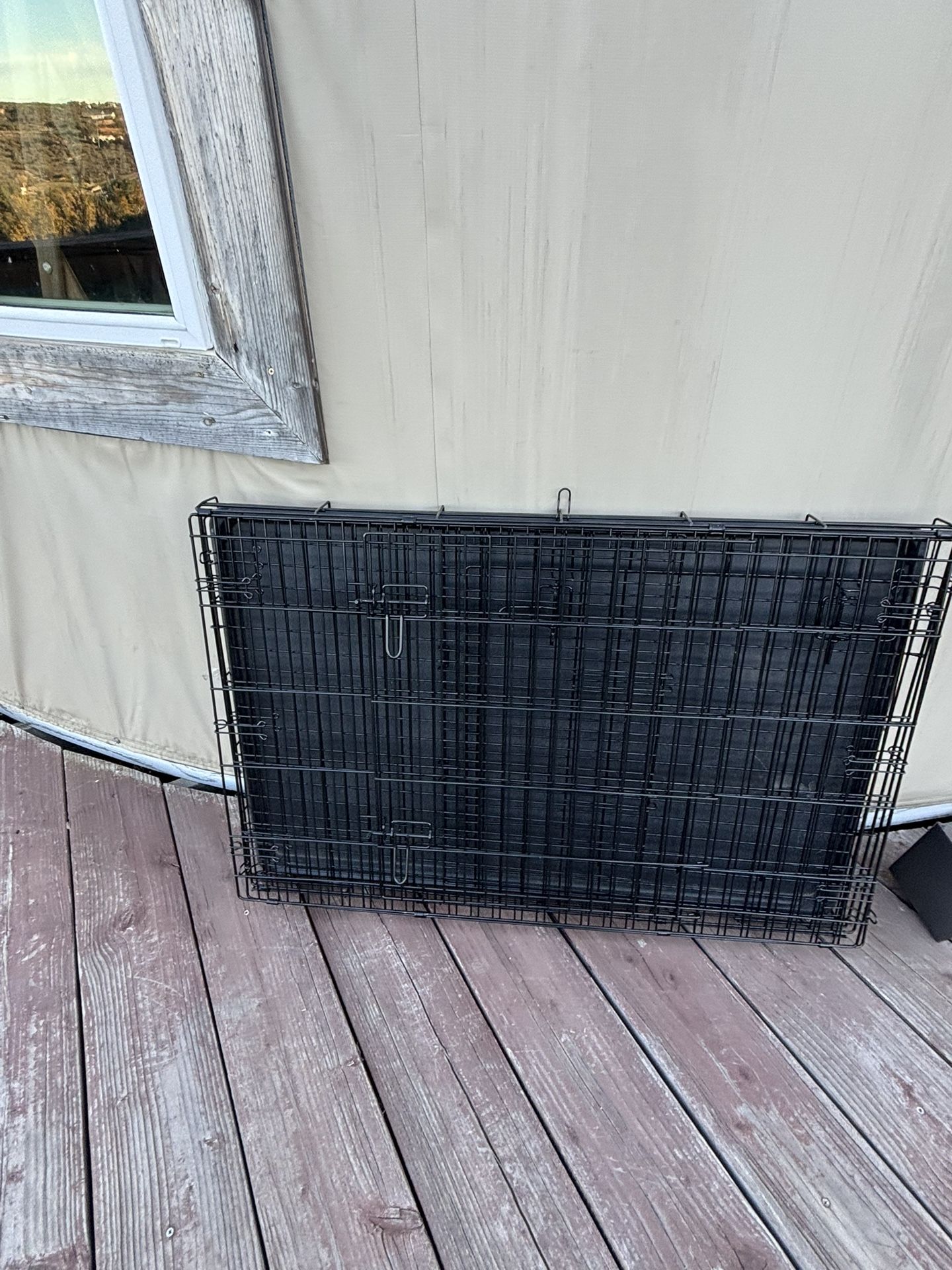 Pick up in Jamul. Large dog crate in good condition. Clean, sturdy, and ready to use. Suitable for medium to large dogs. Dimensions: 42” L × 28” W × 30” H Downsizing sale. Pickup in Jamul.