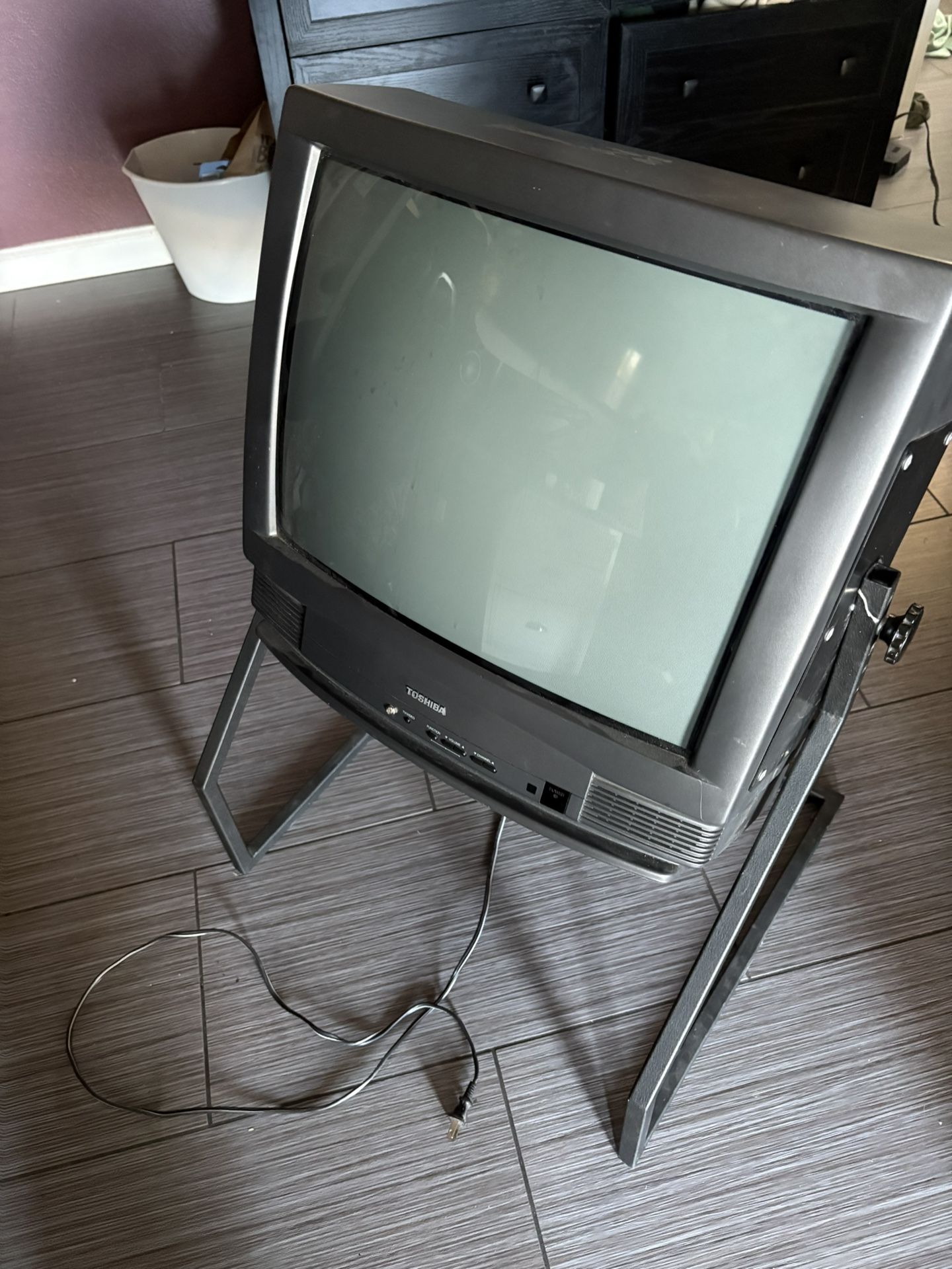 Toshiba CRT Model CF20C30 20 inch, stand is riveted in No problems, it’s all in good working order. Shoot me an offer!
