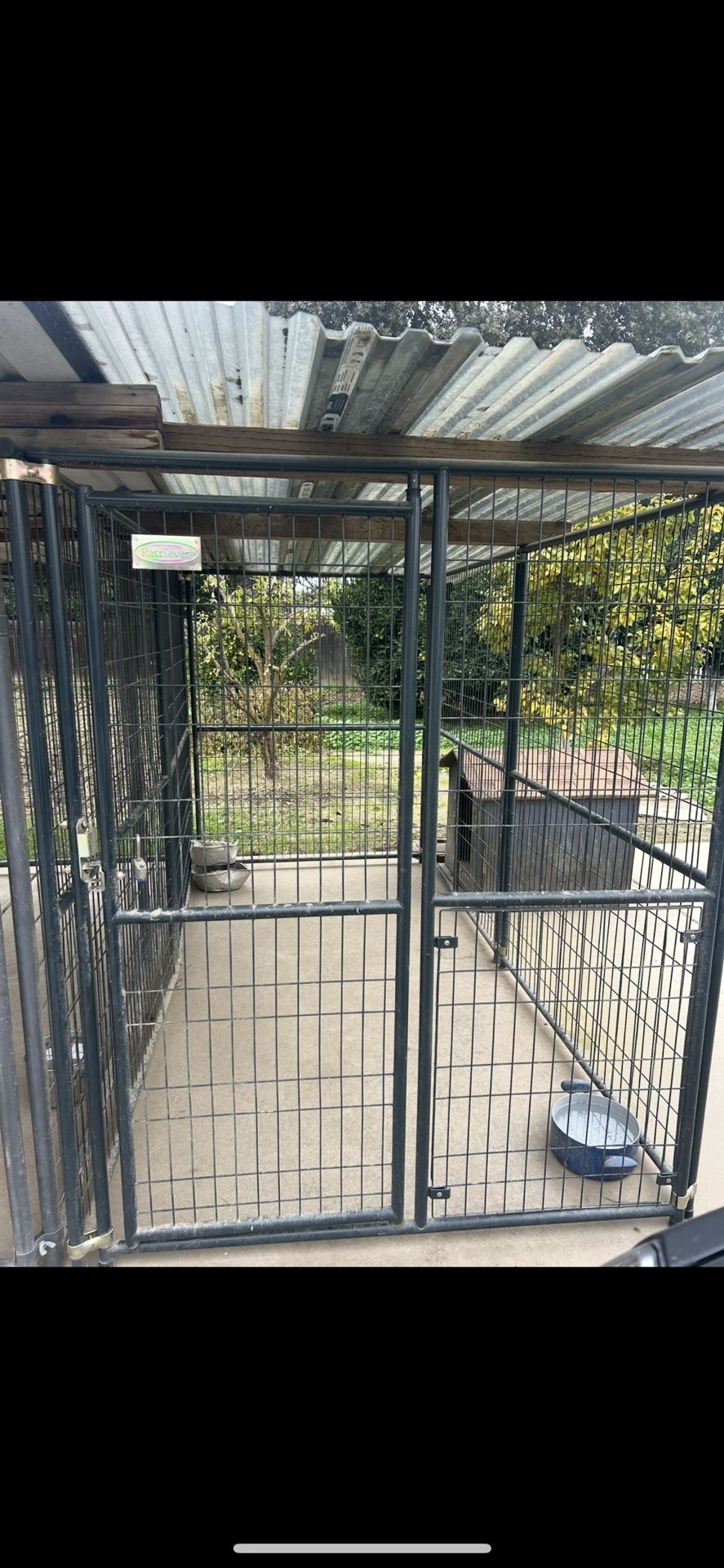 Has lots of room with an optional side opening for your dog house to be attached. Comes with the UV Protection roof panels and wood beams if you want. We paid $500+Tax for the kennel only! Selling for $300which is a great deal. I can deliver for $50 bucks.