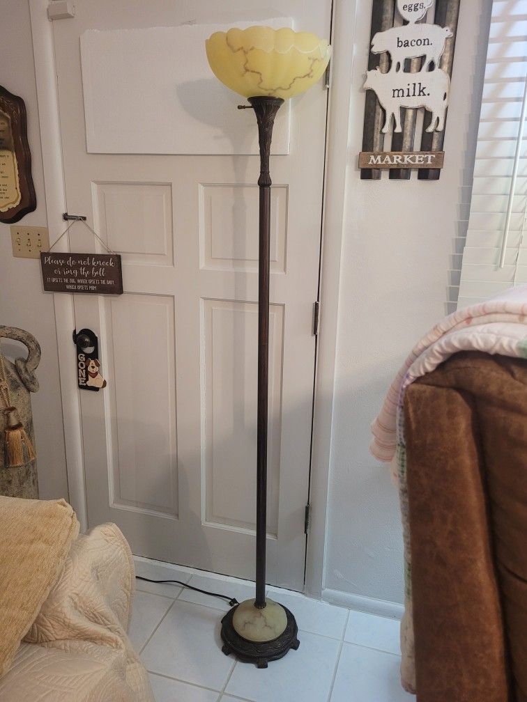 Vintage- Bronze Floor Lamp with Yellowish Glass Lamp Shade Garage Pickup & Cash Only $85
