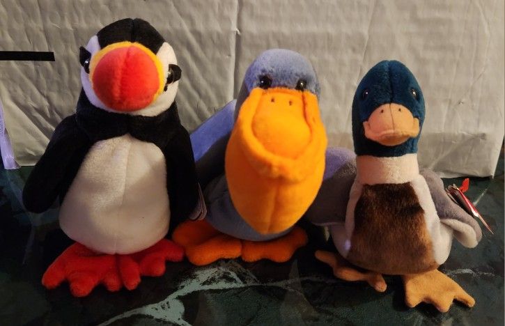 TY Beanie Babies Lot of 3 Scoop the Pelican, Puffer the Puffin, Jake the Mallard