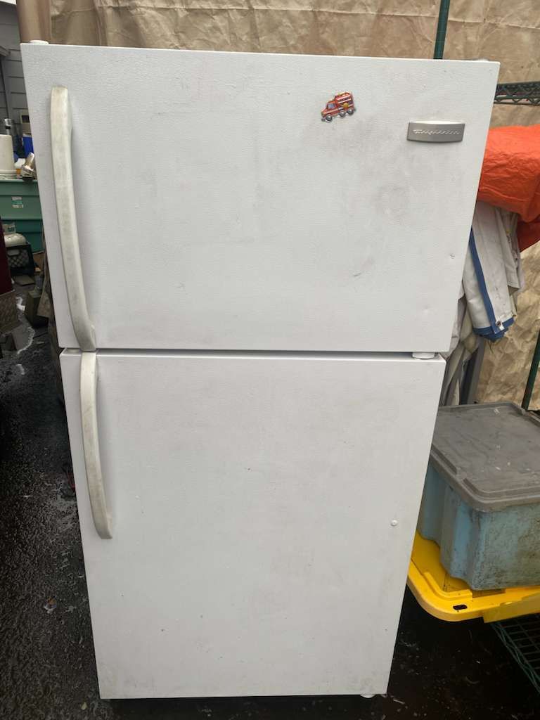 Frigidaire 15 Cu. Ft. Top Freezer Refrigerator Model FRT15HB3JW1 works great Good garage or man cave refrigerator Pickup in beaverton by Washington square mall