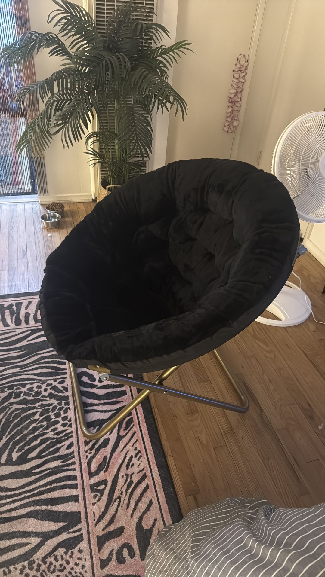 MAKE A OFFER Millard Faux Fur Saucer Chair – Black (XL Size) Super comfy oversized saucer chair in great condition. Soft faux fur cushion with sturdy metal folding frame. Perfect for bedroom, dorm, gaming setup, or chill corner. Folds up easily for storage. Originally $75 — asking $25. Pickup only.