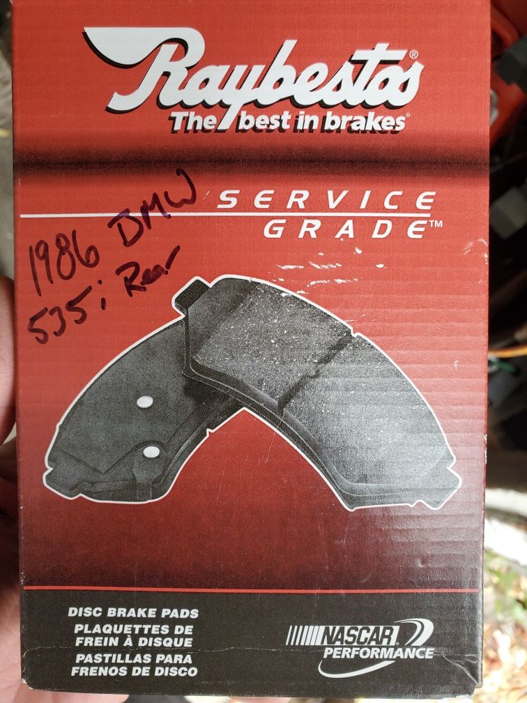 Raybestos SGD279M Semi-Metallic brake pads. I bought these to replace the rear brake pads on my 1986 BMW E-28 535i but didn't do it and now the car has been sold so I have no need for these pads. $15 obo.
