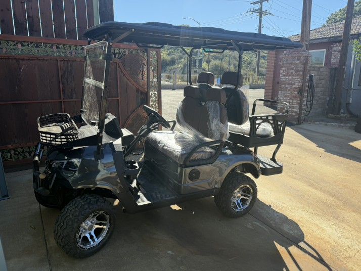 Selling a like new 2025, 60v litnium powered golf cart. Grey with brown upholstery. Sound system. Touch screen. Street legal equipment. Extended roof. Front storage basket. Front tube bumper etc. Priced to sell.
