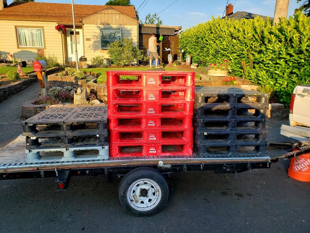 (8) Black Plastic Pallets 32"x40" $5ea (6) Red Plastic Pallets 37"x37" $5ea