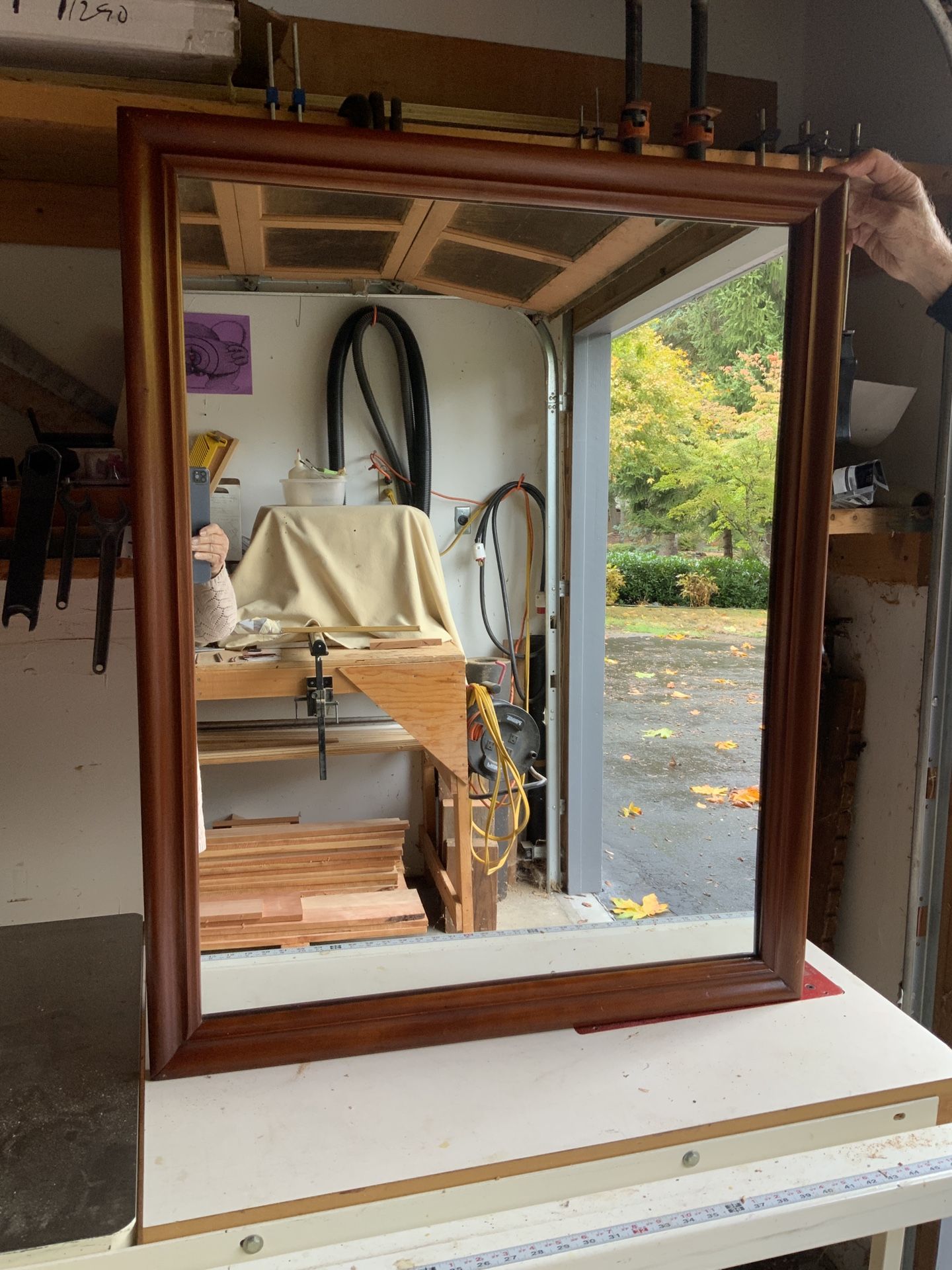 Cherry mirror very good condition. Have brackets to mount behind chest of drawers. 32x40 inches. (contact info removed) Covington area $75.00