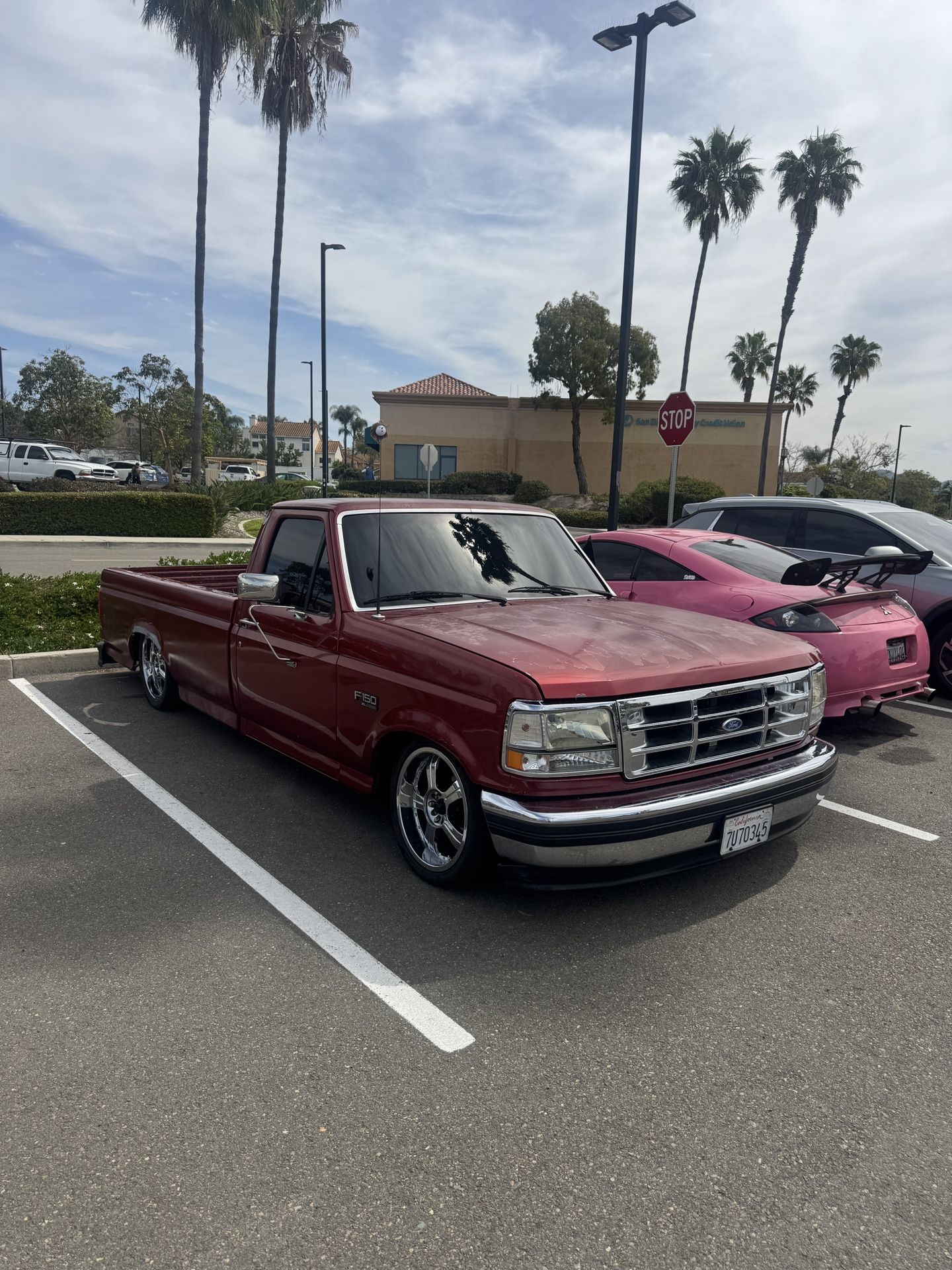 I’m selling my 1996 F-150 Xl with a 5.0L that comes with a 5 speed manual, I’ve done a lot of work to it, it’s currently sitting on a 6/16 drop with DJM ibeam control arms in the front and a custom made 10” drop block in the rear with a C-notch, and other small components such as leaf spring clamps to lower it a bit more, I’ve also got a fuel cell sitting in the bed of the truck that holds approximately 15 gallons, the overall body of the truck does need a little bit of work but no major dents at all , I do have a crack on the windshield which is shown in the photos but the interior is in good condition,‼️Will need a tow due to the driveshaft flange getting snapped from the rear axle I’ve inspected the issue and It is a fixable just something that I don’t have time to fix anymore, the motor still runs along with the transmission they both run amazing and drove amazing, just needs that part and it’ll be back on the road‼️meesage me for info‼️willing to part out‼️