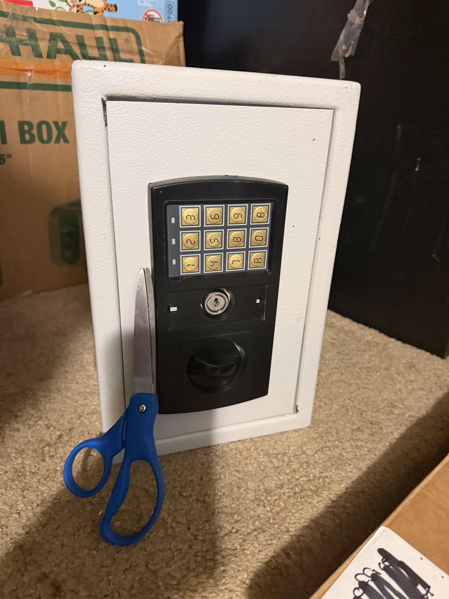 Key or Number input Security Lock Safe. I have the key for it as well and u can set ur own code.. asking $30