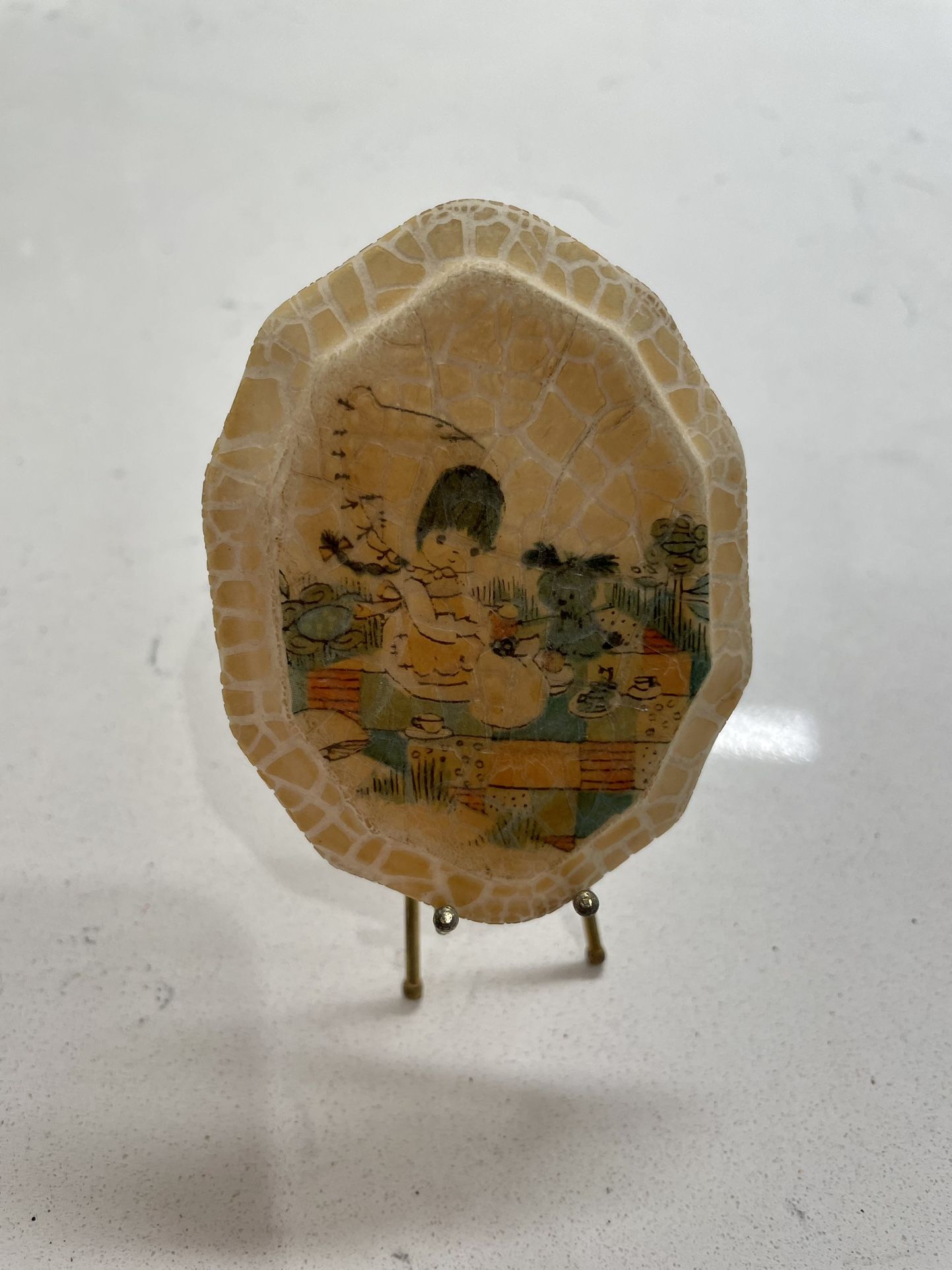 Vintage Accent wall Piece With Stand little girl with dog on a picnic