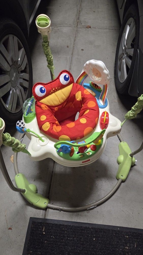 Fisher Price baby jumper. In great condition for being "used". Sturdy with tons of entertainment for your little ones. Leg base does come apart for quick storage.