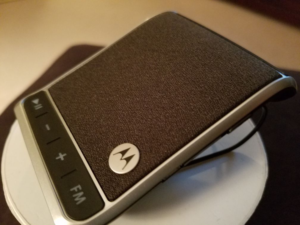 This is the best Bluetooth hands-free speakerphone with built-in fm transmitter I've ever used. Works flawlessly and when you download the motospeak app it's even more amazing. You can answer calls, make calls, reply to texts and make text, play music and just about anything you need to do on your device hands free with no cords and all connected via Bluetooth 4.1. Bluetooth 2.1 speakerphone keeps hands free for the roadSleek black unit clips to visor securely and unobtrusively FM transmitter streams sound to your car's audio systemConnect up to two devices simultaneously On-off switch to shut down when off the roadTalk time of 20 hours and standby up to 500 hoursPower-saving mode increases battery lifeMotospeak application integrates with phone to accept voice commands and read back responses3.54" x 2.76" x 0.55"